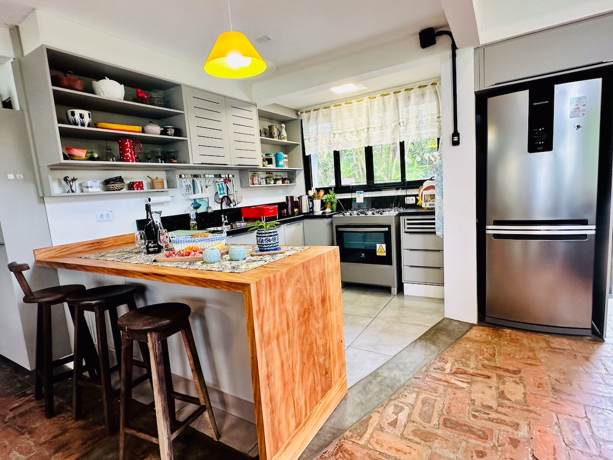 Casa Guapê Encantadas 'ın qürubuna, eləcə də möhtəşəm Serra do Mar-a baxan dəbli bir məkandır! Geniş, əyləncəli və yaxşı yerdə yerləşir. Burada wi-fi, tv, tam mətbəx, düşərgə yanğını, süstlük və dincəlmək üçün müxtəlif qamaklar var. Yeri gəlmişkən, ev çimərliyin 20 addımlığındadır. DİQQƏT: Ev yataq və hamam dəstləri təklif etmir. Yastıqlar və döşəklər örtüklərlə təklif olunur. QEYD: Davamlı dekorasiyası olan kənd evi. Həftə sonları, məşğul cığırda potensial səs-küy.