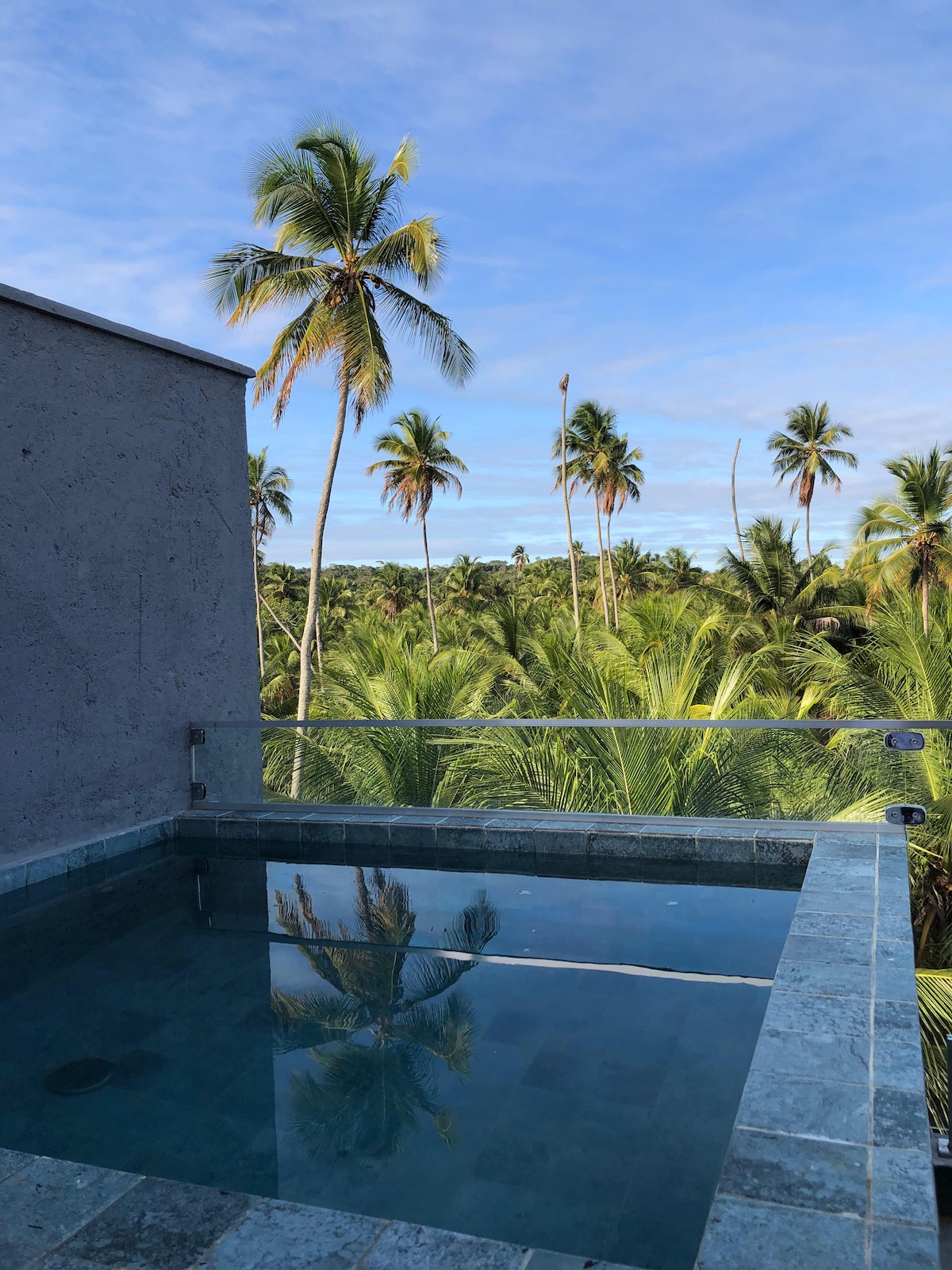 • Prime Location: Close to the beach and the Chapel of Milagres. • Exclusive Highlights: Private rooftop pool and barbecue area. • Complete Accommodations: 3 en-suite bedrooms with air conditioning. • Indoor Spaces: Comfortable living room and fully equipped kitchen. • Internet: High-speed Wi-Fi. • Outdoor Spaces: Spacious terrace with a hammock and views of the coconut groves, perfect for relaxing. • Security: Private Condominium with 24-hour security.