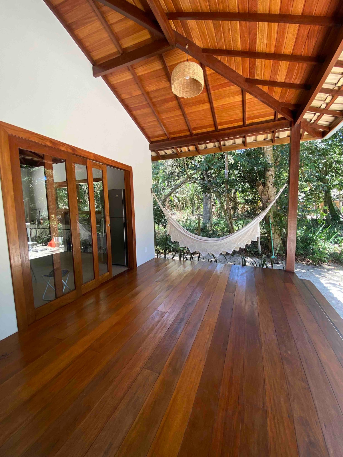 Quer relaxar e se conectar com a natureza num cantinho aconchegante e de estilo bem praiano? Nosso bangalô dispõe de um quarto amplo, com cama queen confortável, ar condicionado, Wi-Fi e frigobar, banheiro, e uma cozinha externa exclusiva e equipada com fogão e utensílios. Caminhando cerca de 10 minutos, você chega à bela praia de Guaratiba, uma praia quase que privativa, pois estamos dentro de um condomínio fechado que conta com segurança 24h. Aqui você vai realmente se sentir de férias!