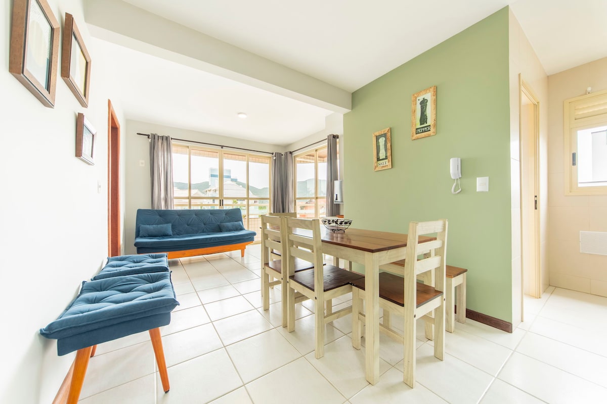 Gözəl, müasir şəkildə bəzədilmiş mənzil Pântano do Sul çimərliyinə bir neçə addımlıqdır!Sakit bir kənddə rahatlıq və rahatlıq axtaran ailələr üçün mükəmməldir.2 yataq otağı, 2 sanitar qovşağı, 1 qapalı parkinq yeri, kondisioner, manqal və yüksək sürətli Wi-Fi var.Restoran, kafe, idman zalı və marketlərə yaxındır.Yalnız pilləkənlərlə giriş. Florianopolisin cənub sahilinin ən yaxşılarından həzz almaq üçün idealdır!