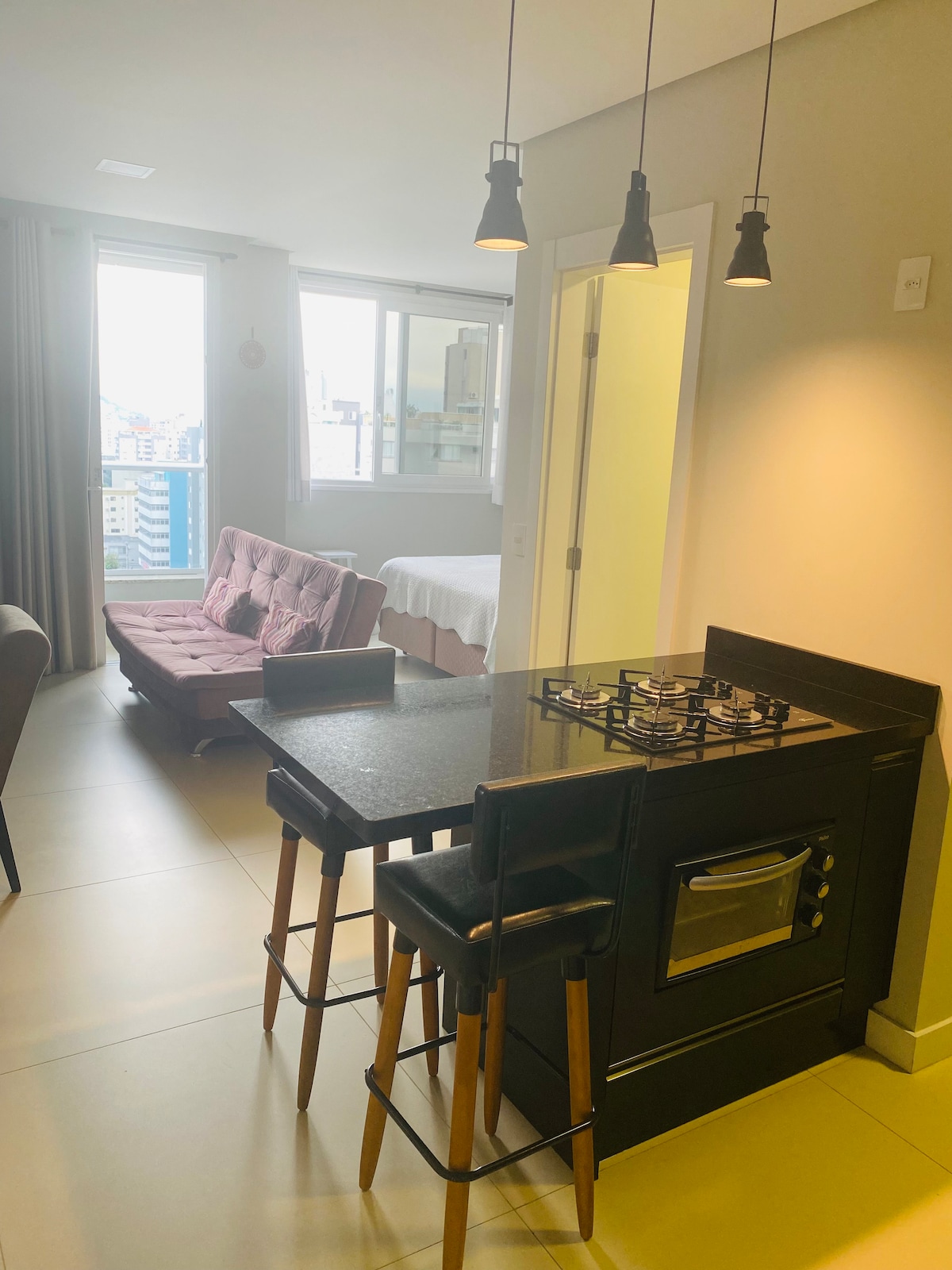 Mərkəzin ən yaxşı bölgəsində, Şimal Sahilindən 400 metr məsafədə rahat studiya mənzili. Florianopolisdə turizm, müvəqqəti iş, kurslar və ya biznes üçün idealdır. Tam təchiz olunmuş mətbəx, yataq dəsti və hamam dəstləri ilə gündəlik həyat və ev ofisi üçün rahat məkan. Yaxınlıqda bazarlar, restoranlar, alış-veriş və xidmətlərin olduğu üstünlük təşkil edən mövqe. Dam üzərində hovuz və pulsuz örtülü qaraj olan yeni, təhlükəsiz bina. Uzunmüddətli qonaqlamalar üçün xüsusi şərtlər. 10 gündən uzun müddətləri yoxlayın