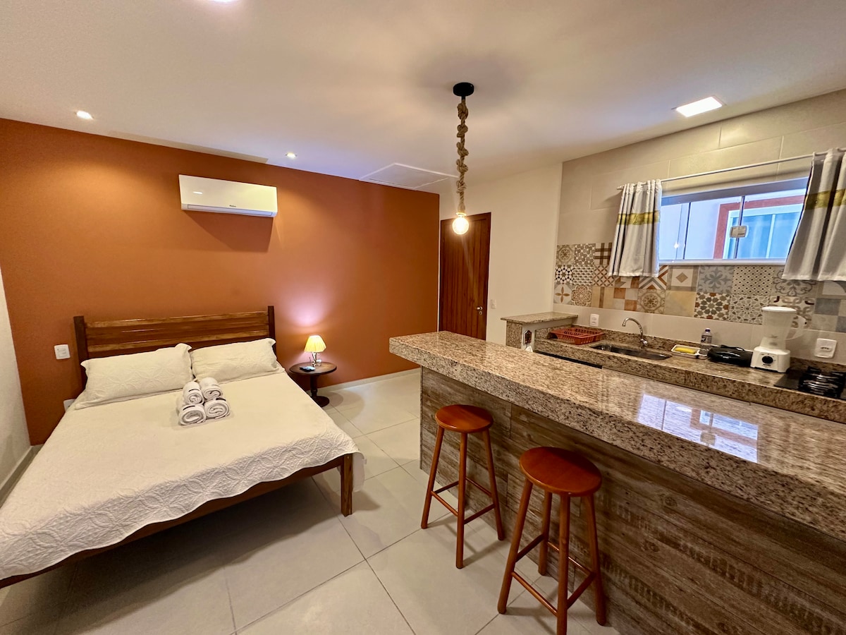 Tam mətbəx IV olan Süitamızda qonaqlayın və möhtəşəm şəhərimizdən zövq alın. Sizə rahatlıq və komfort təklif etməyi düşünürük, tam mətbəx və ayrıca hamam otağı olan tam yataq otağımız var. Yataq dəsti və çimməyi təklif edirik. Biz Praia Bravadan 700 metr, Búzios mərkəzindən 1.1 km və Orla Brigitte Bardot-dan 600 metrdən az məsafədə yerləşirik.