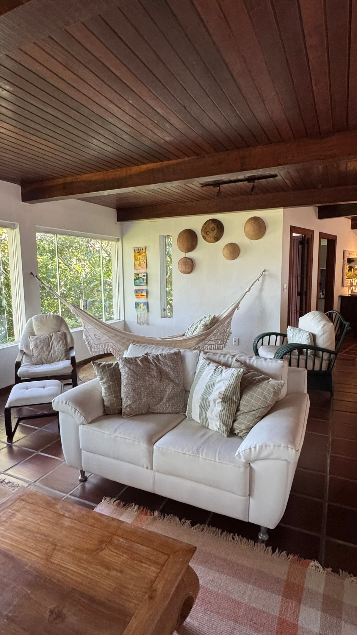 Vermelha do Centro çimərliyində, dənizdən 3 dəqiqəlik məsafədə, sakit bir küçədə kənd evi. Solarada və Atlantik Meşəsinin ortasında yerləşən tropik bağla əhatə olunub. 3 yataq otağı, 1 süita var. Otaq mətbəxlə birləşdirilib. Soyuducu, soba, blender, qazanlar, çörək bişirmə tavaları və yemək hazırlamaq üçün lazım olan digər ləvazimatlarla təchiz olunmuş mətbəx. 350 mb fiberoptik internet var. Televizor ağıllı 43" Şəxsi istifadə üçün döşəkağılar, dəsmallar və digər əşyalar gətirmək lazımdır. Yastıq və ədyallar var.