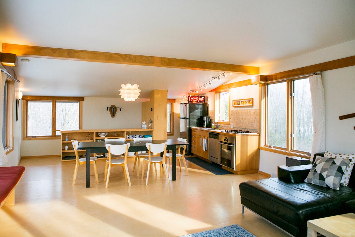 "Forbes" in məlumatına görə, Escape "dünyanın ən gözəl evciyi" hazırlayır. Bizimki Qara çayın üstündəki evimizin yaxınlığında yerləşir. Bura dövlətlərarası, parklar, cığırlar və kafelər, mağazalar və əla restoranları olan canlı şəhər mərkəzindən cəmi bir neçə dəqiqəlik məsafədə sakit məhəllədir. Böyük pəncərələrdən və ya eyvanda rahat günbəzdən məxfilik və valehedici mənzərələrdən zövq alın! Maral, qunduz, qartal və daha çox mövsümlər boyanmış çay mənzərələri və heyranedici gün batımları dəyişdikcə tez-tez gəlir gətirir. * Ev heyvanları yoxdur