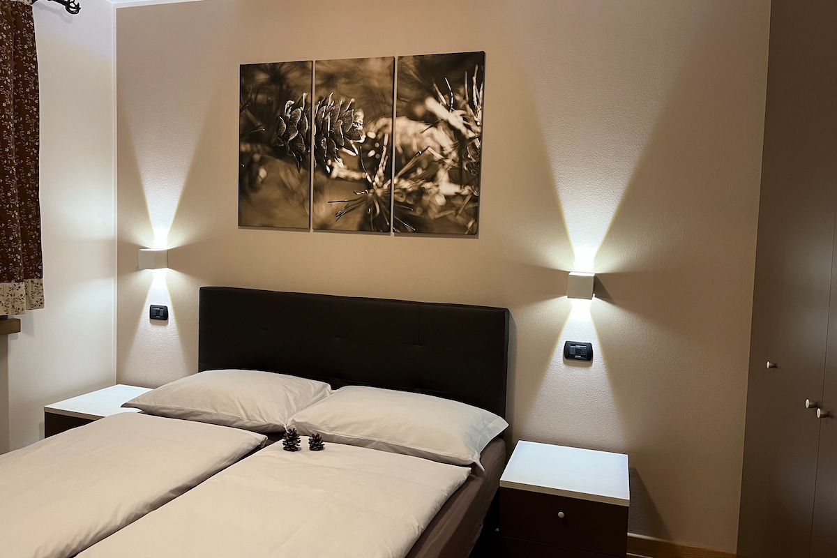 L'appartamento dispone di: una camera da letto matrimoniale, un bagno e la zona giorno con divano letto; tv in sala e in camera, WI FI, microonde, lavastoviglie, lavatrice e posto auto privato. A pochi passi da casa ci sono: bar, un negozio di alimentari, una macelleria, ristoranti, pizzeria, la ski area di fondo di Valdidentro, gli impianti di risalita Cima Piazzi Happy Mountain. A 10 min d'auto si arriva a Bormio con I Bagni Vecchi e Nuovi, le Terme e la sua famosa ski area. Livigno è a 30 min