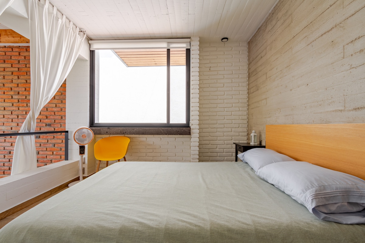 Bernalın sehrli kəndində qalmaq üçün ən yaxşı yer iki otaqlı gözəl mənzilimizdir. Hər zaman Peña de Bernal ilə çərçivələnəcək xoş atmosferə nail olmaq üçün regionun səciyyəvi materiallarını və florasını qarışdıran minimalist dizayna malikdir, çünki o, monolitin ən yaxşı mənzərəsinə sahib olmağa istiqamətlənmişdi. Şəhərin mərkəzindəyik, gəzinti üçün idealdır. Hər zaman nəzarətimiz və ən yaxşı terrasımız var.