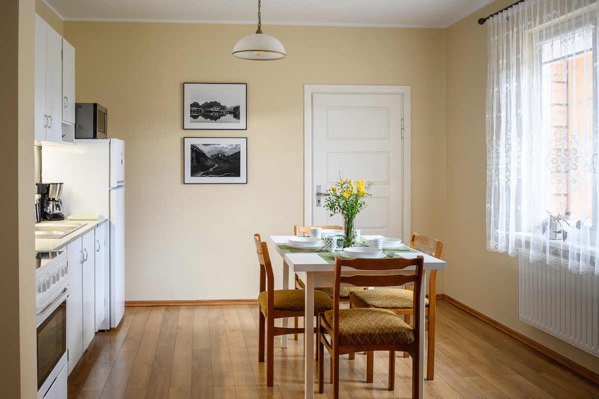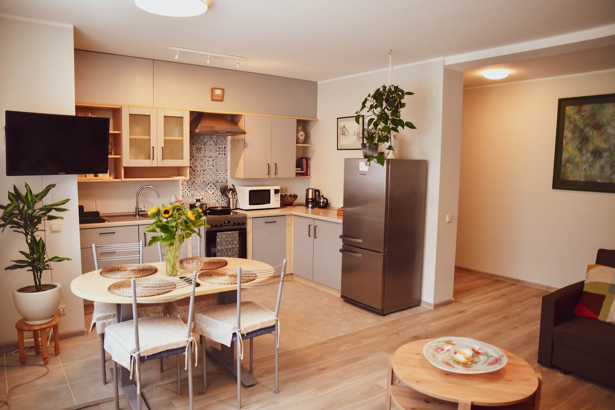 Rahat, iki otaqlı mənzil sizi və ailənizi və ya dostlarınızı Birston kurortunda dincəlmək üçün gözləyir. Kurortun mərkəzində, Mərkəzi Şəhər Parkının yanında, məşhur Nemunas sahilinə yaxın yaşayacaqsınız. Kurortun bütün zövqləri: hovuzlar, masajlar, velosiped kirayəsi, gəzinti qayığı kirayəsi, mağaza, mədəniyyət müəssisələri və digərləri - əlçatandır. Bu sakit yerdə bütün ailə ilə birlikdə dincəlin.