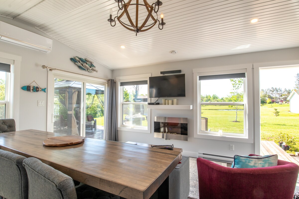 Gözəl, sakit, özəl! Birbaşa PEI-nin məşhur şimal sahilində oturmaq bu unikal əmlak mükəmməl bir yol və istirahət yeridir. Körfəzin və qum adalarının heyrətamiz mənzərələri ilə döşəmədən tavan pəncərələrinə qədər heyrətamiz mənzərələri ilə heyrətamiz günəş və günvurmalardan zövq alacaqsınız! Dənizkənarı restoranlar, milli park, yürüyüş yolları və heyrətamiz çimərliklərdən 5 dəq. məsafədə, hələ ki, PEI-nin canlı paytaxtı, Şarlottaun şəhərindən cəmi 20 dəqiqəlik məsafədə! Bu, təbiətin mərkəzində unikal və romantik bir qaçışdır!