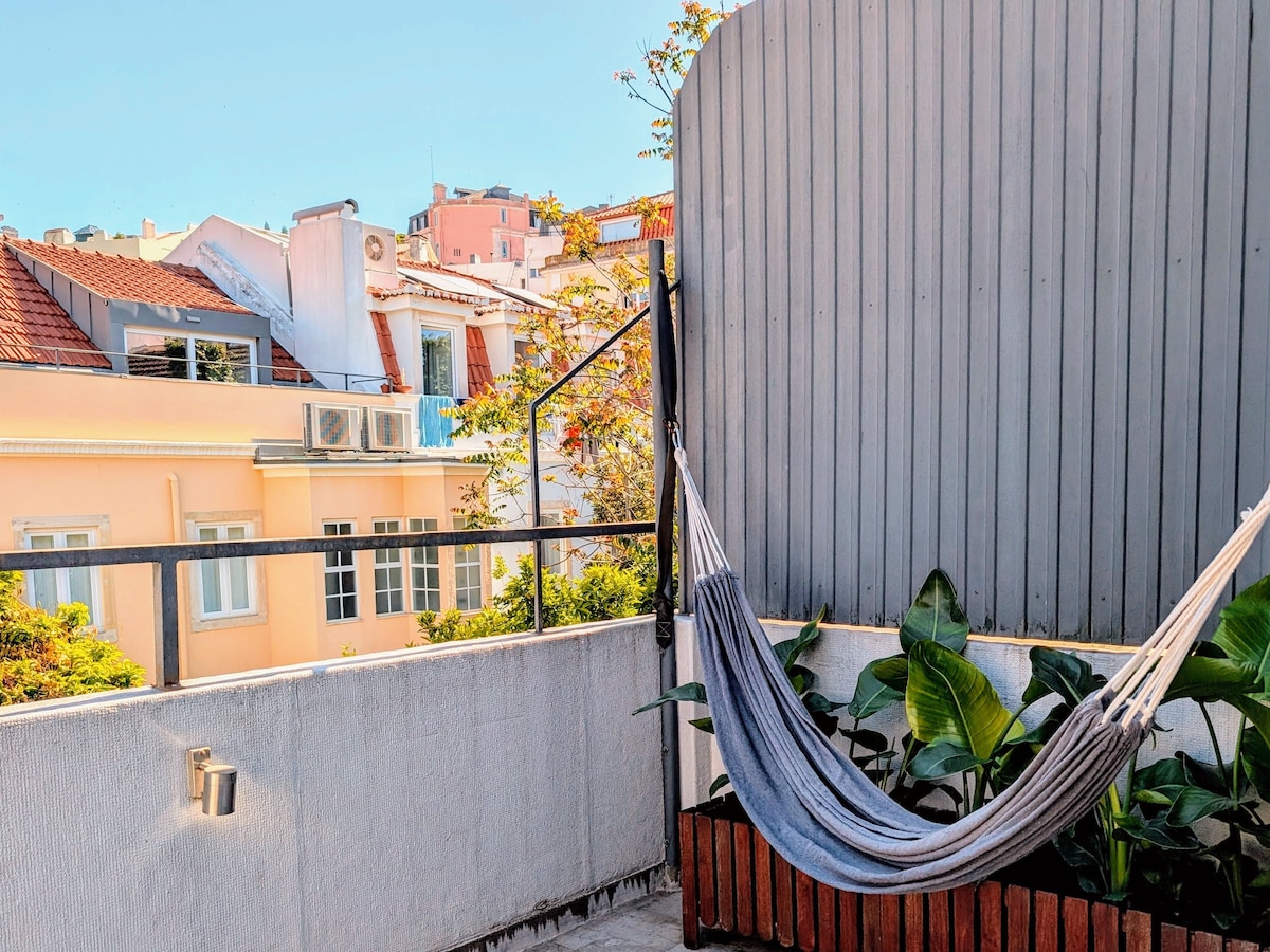 Şəhər, Taqus və Botanika Bağı mənzərəsi olan 2 terraslı cazibədar, sakit təmir edilmiş süita. Mərkəzi və dəbli Prinsipi Realda XIX əsrə aid binanın damı. TAM MƏTBƏX YOXDUR, yalnız mikrodalğalı soba, bişirmə lövhəsi, minibar soyuducusu, Nespresso, çaydan və əsas mətbəx ləvazimatları olan kiçik mətbəx var. 2 otaq, Lissabonun görməli yerlərini və maraqlı restoran mənzərəsini araşdıran bir cütlük (maksimum 2 uşaqla) və ya 2 dost üçün idealdır.