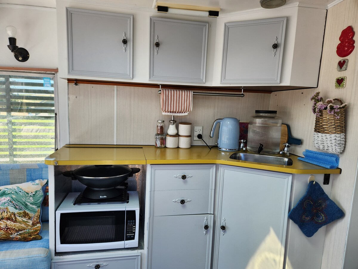 Fully self contained gypsy wagon located close to beach of Porpoise Bay. No ocean views but beach is 2min walk. Super king size luxury bed. Very tidy inside. Cooking facilities. Log burner with wood supplied. Outdoor BBQ. Linen/towels included. This accommodation is located on our property beside our house. The toilet/shower room (converted water tank) is located 9 meters away from the gypsy, a short walk across the grass lawn. Our gypsy wagon can sleep 2 adults plus one small child in one bed
