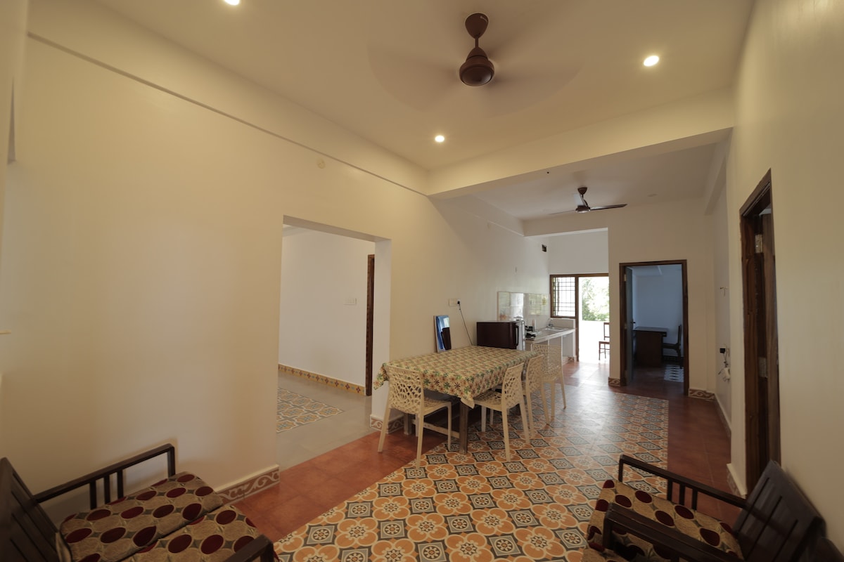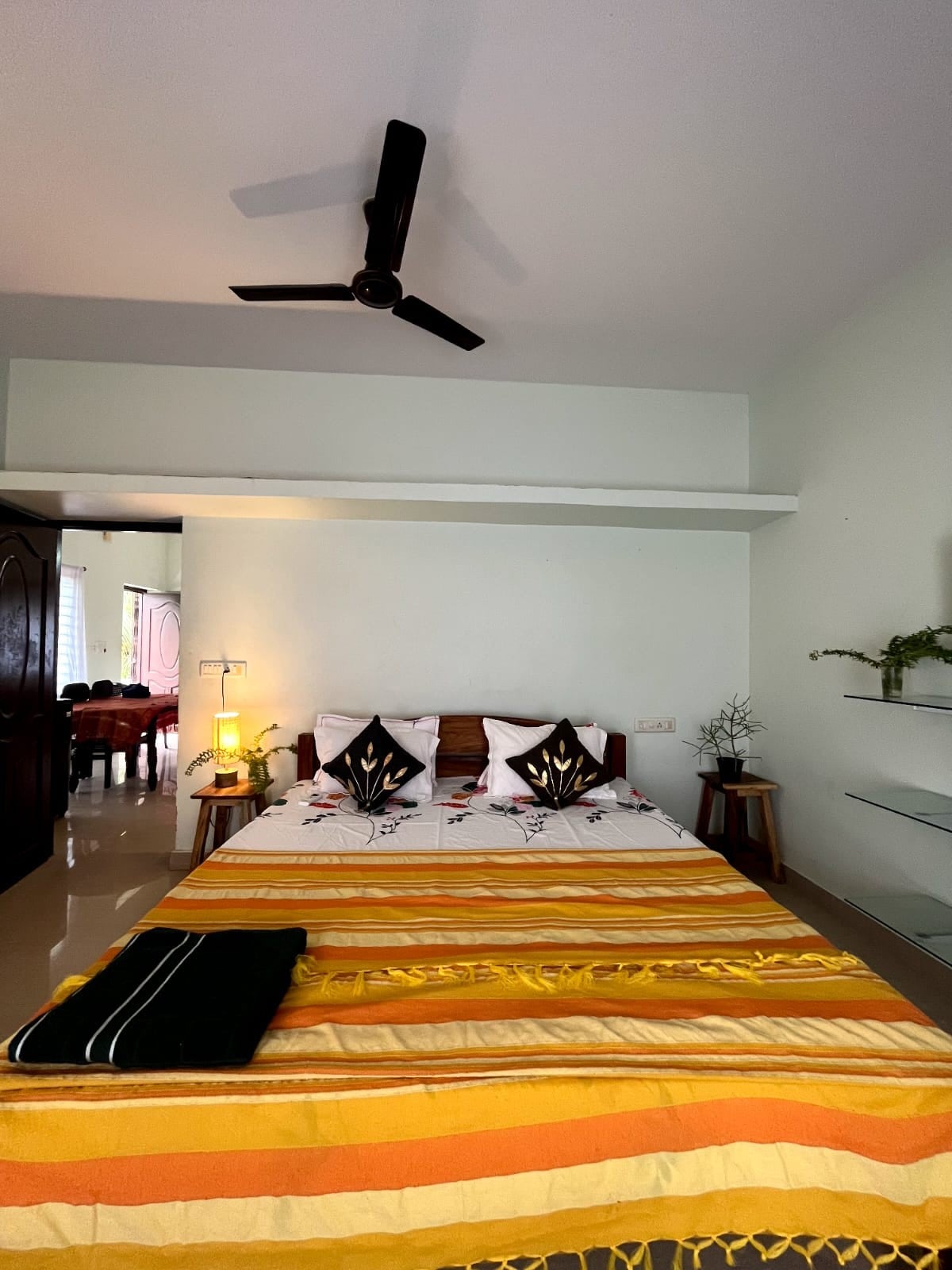 Aurovildəki evdən uzaqdakı eviniz Çetinad mövzusuna uyğun zövqlə bəzədilib. Evimizin hər bir guşəsi rəngarəng interyer, kolam sənəti, antik dekorasiya və daha çoxu ilə Instagram-a layiqdir. 1BHK qonaq otağında yelləncək çarpayısı və divan çarpayısı ilə 4 nəfərə qədər insanı rahatlıqla yerləşdirə bilər. Yaxınlıqda çoxlu restoranlar var, mətbəximiz bütün ehtiyaclarınız üçün düşünülmüş şəkildə təchiz edilib - sürətli omlet və ya tam hind yeməyi hazırlamaqdır. Odur ki, əyləşin, dincəlin və qəhvənizi qurtum-qurtum iç