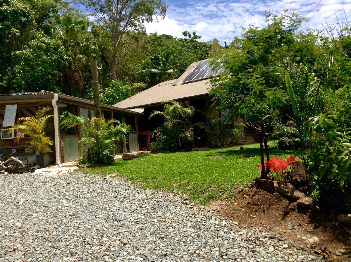 Escape to Sunrise Hill Pet Friendly Airbnb, nestled on a rural property in the Whitsundays, where pets are not just allowed, they're welcomed. Our unique 'Shouse' (Shed House) sits on 5 acres of stunning landscaped gardens and rainforest, home to diverse wildlife and a serene Billabong. Ideal for those seeking tranquility, explore our lush surroundings or relax in the rural charm. With ample boat storage and vast spaces for pets to frolic. Unsuitable for children due to the unfenced Billabong.