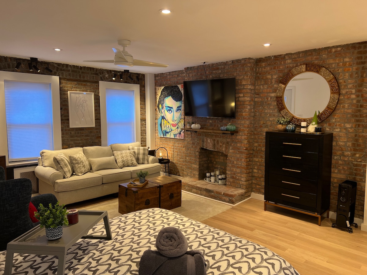 Tarixi Braunstounun zirvəsində yerləşən dəbdəbəli, yeni təmirdən çıxmış penthaus mənzilimizdə qonaqlayın. Çoxlu sevimli kafeləri və yaxınlıqda ciddi şəkildə yaxşı yeməkləri olan Manhettendən cəmi 15 dəqiqəlik məsafədə rahat bir mövqeyə malikdir. Qonaqlamanızı mümkün qədər rahat və rahat etmək istəyirik. Romantik tətil istəyən cütlüklər üçün mükəmməldir. Ümid edirik ki, bu gözəl məkandan bizim qədər zövq alacaqsınız. :) Daha çox şəkil və məlumat üçün
