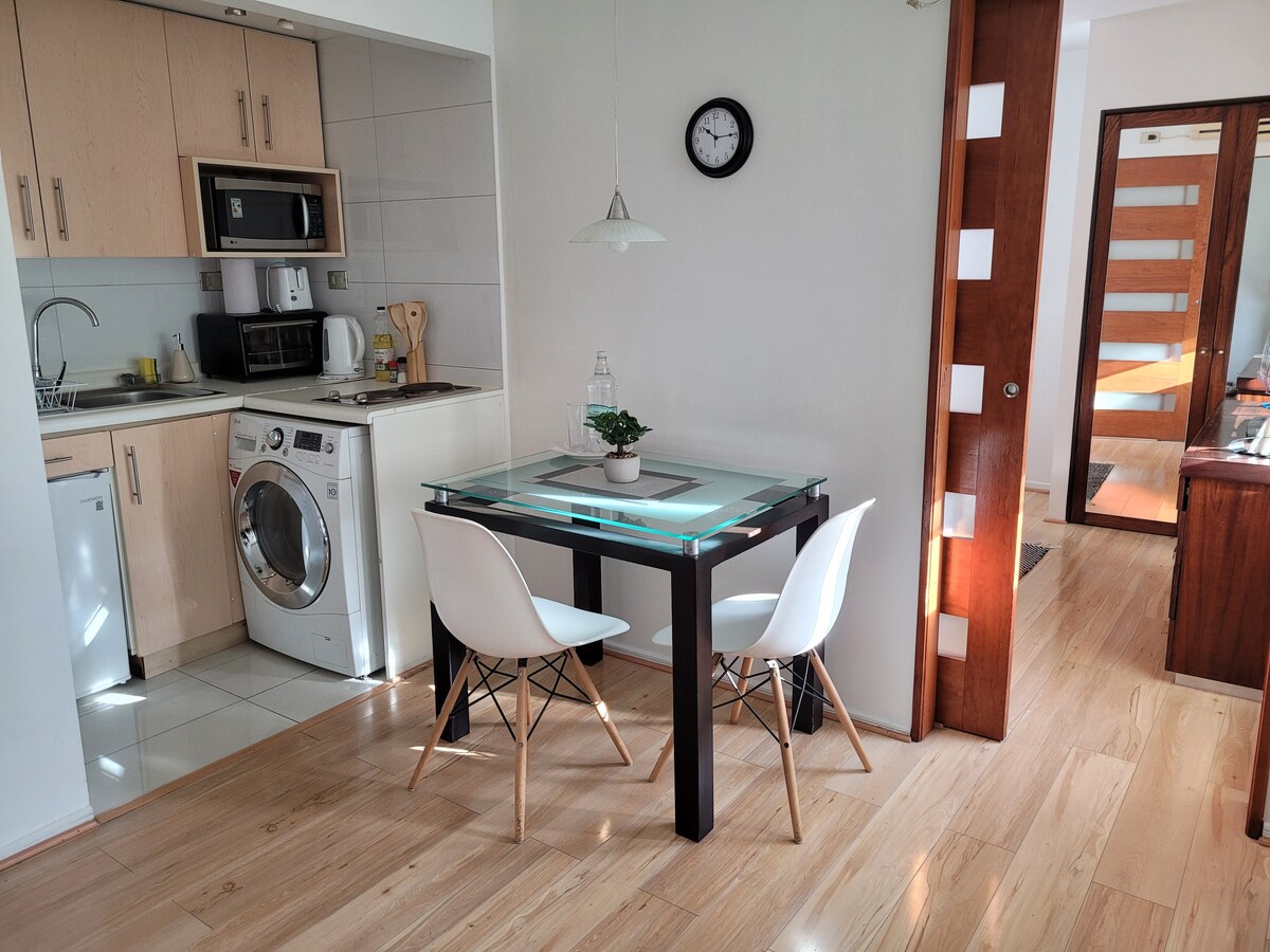 Santa Lucia Hill, "Bellas Artes", "Bellas Artes" muzeyinə, Barrio Lastarria, Metro və bir çox restorana yaxın turizm sektorunda yerləşən Loft mənzili. Texnoloji şöbə, səsli işıqlara nəzarət edin, "Alexa, vaxt necə olacaq" soruşun, qapını mobil telefonunuzla bloklayın. Çox yaxşı bəzədilmiş, Santyaqodan zövq almaq üçün idealdır, fəaliyyətlərlə dolu bir gündən sonra gəlib dincəlin. İstirahət etmək və "Santiaguina" həyatını yaşamaq üçün ən yaxşı mənzil.