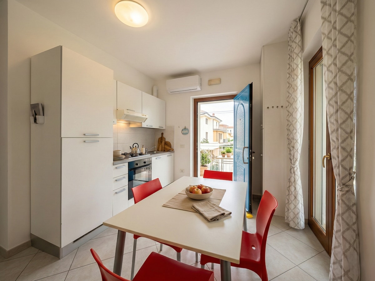 Porto Sant'Elpidionun mərkəzində, il ərzində tədbirlərin, konsertlərin və tədbirlərin mərkəzi olan Piazza Qaribaldi meydanından bir neçə addımlıq və mərkəzi gəzinti yerindən 150 metr məsafədə, avtomobildən istifadə etmədən şəhəri təcrübədən keçirmək üçün ideal olan müasir mənzildə qalın. Qonaq otağı: Tam təchiz olunmuş mətbəx, Smart TV və divan-çarpayı. Yataq sahəsi: Özəl hamam otağı olan iki nəfərlik otaq. Üstəlik: Wi-Fi, paltaryuyan maşın və kondisioner. Əmlakın qarşısında və ətraf küçələrdə pulsuz parkinq mövcuddur.