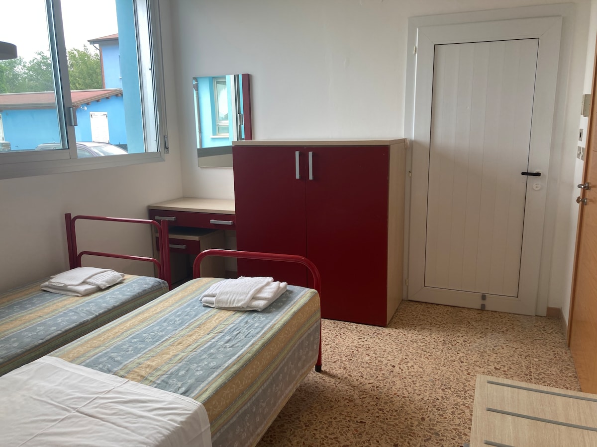 Camera doppia, bagno e accesso al mare