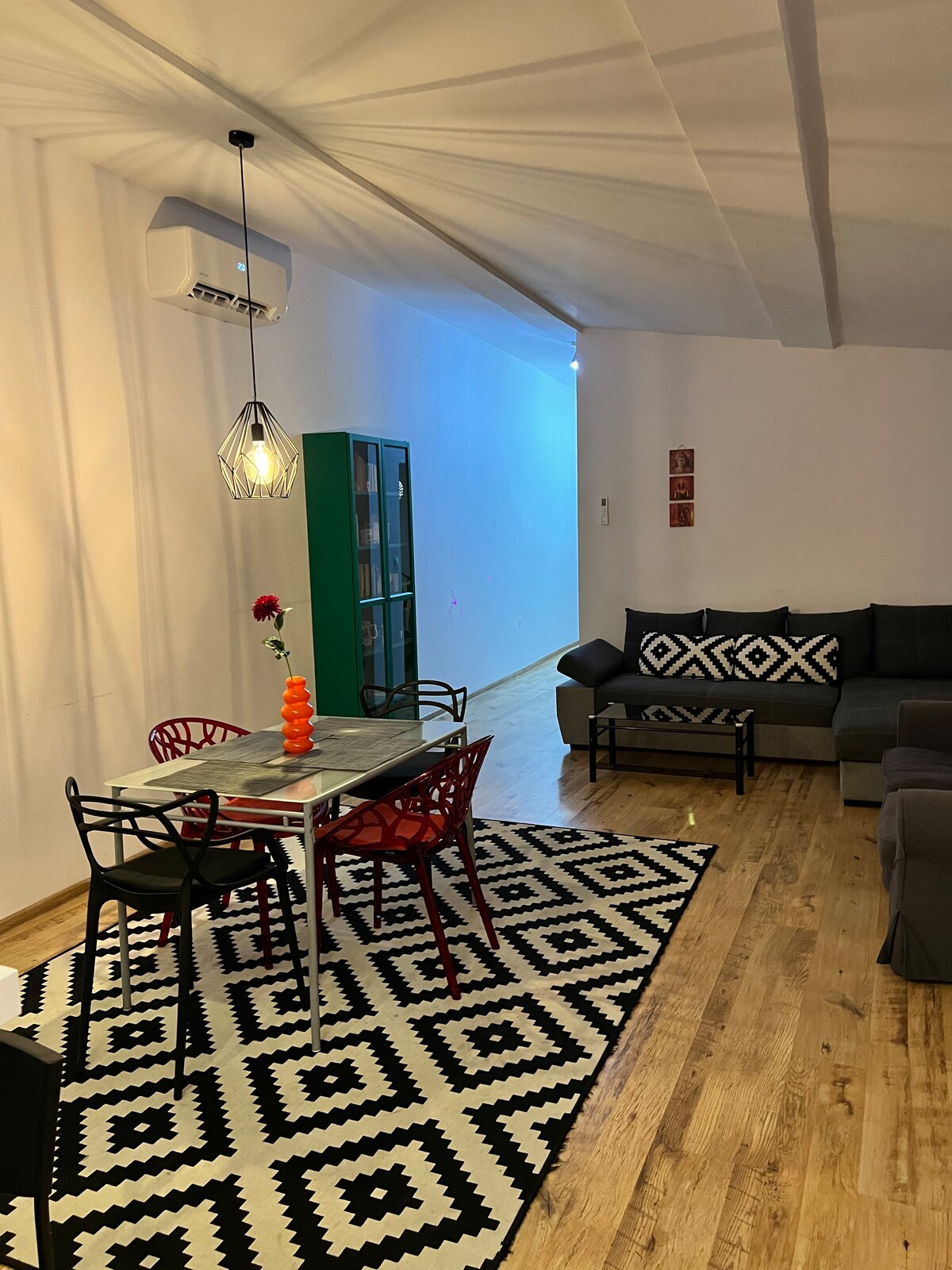 Przestronny apartament (75 m²) w ścisłym centrum Katowic, przy Placu Wolności. Położony w oficynie przedwojennej kamienicy — cisza i spokój mimo centralnej lokalizacji. Apartament znajduje się na parterze i jest w pełni wyposażony. Oferuje szybki internet, telewizję satelitarną, Netflix, HBO GO oraz Amazon Prime. Centralne ogrzewanie zapewnia wyjątkowo komfortowy pobyt również zimą. Idealny wybór, jeśli szukasz przestrzeni, wygody i centrum miasta bez hałasu.