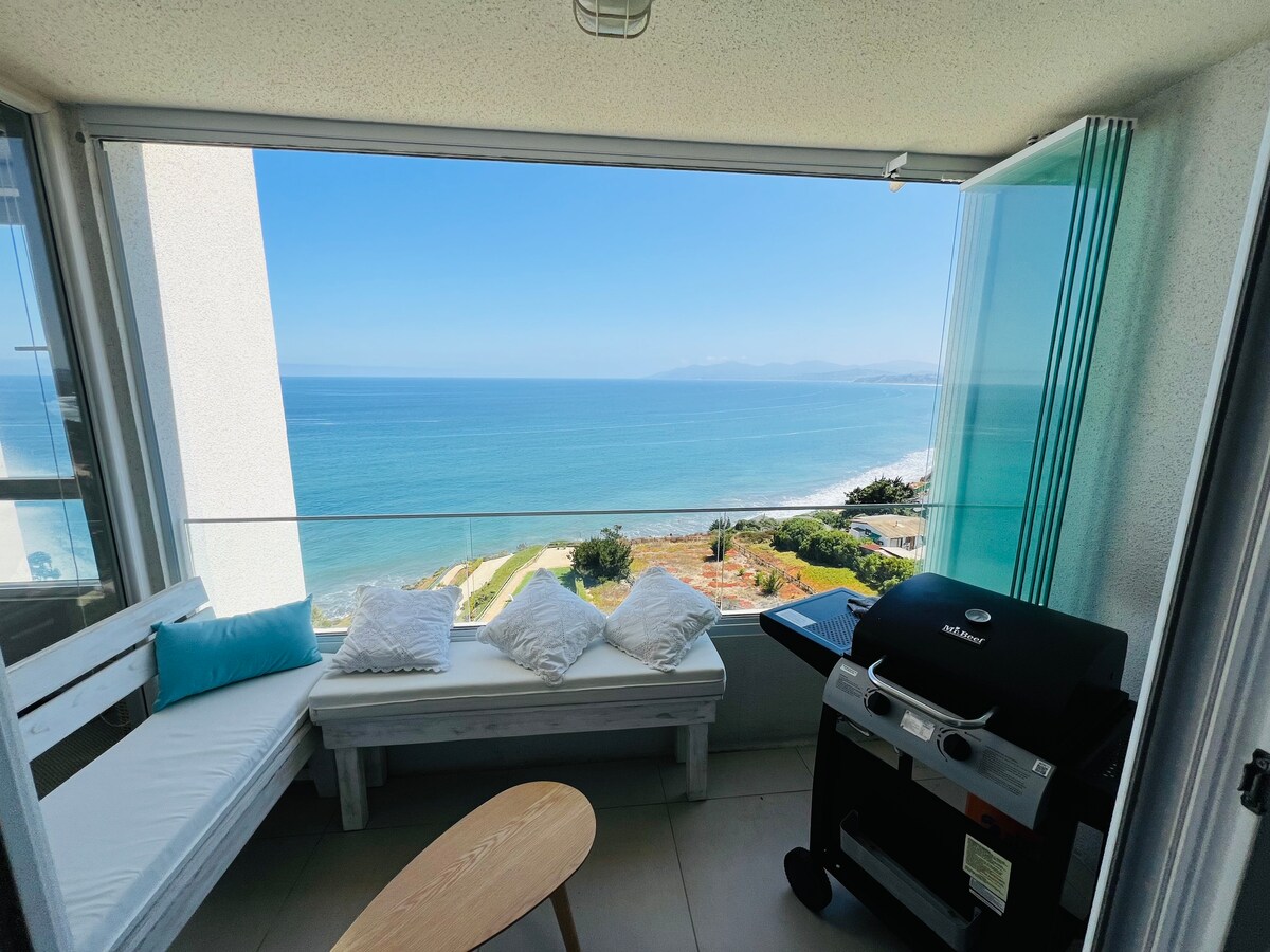 Compramos este departamento porque nos enamoramos de la vista y de la belleza del condominio. Lo remodelamos completo y quedó muy acogedor. Nuestros huéspedes podrán disfrutar del atardecer en la terraza y del amanecer escuchando el mar. El condominio cuenta con cuatro piscinas y una de ellas es temperada. Pueden disfrutar del quincho, la cancha de tenis y bajar por el ascensor directo a la playa. Está pensado solo para parejas y estamos seguros que disfrutarán de una estadía espectacular.