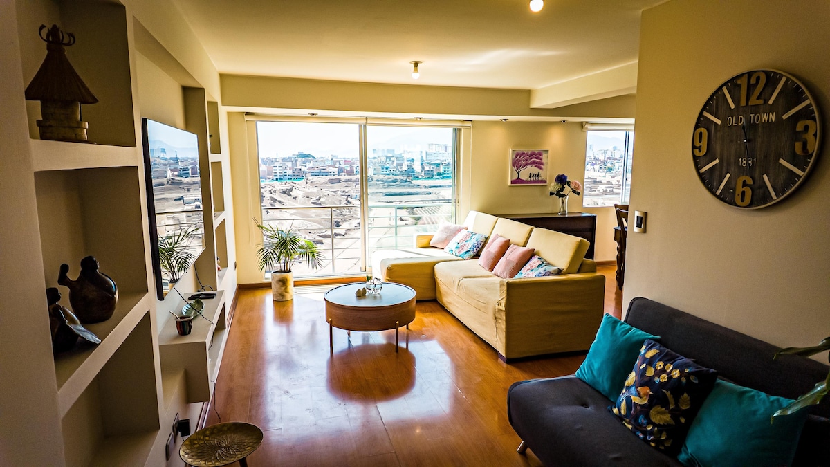 Perunun Lima şəhərində strateji əsas prospekt ərazisində yerləşən tam təchiz olunmuş ilkin mənzil. Qonaqlamanızı unikal etmək üçün binadakı ümumi məkanlarla. O, qonaqlarım üçün səmimi və qonaqpərvər məkan, eləcə də gün batımından və şəhərin gözəlliyindən zövq almağınıza imkan verəcək müstəsna panoramik mənzərələr təklif etmək niyyəti ilə yaradılıb.