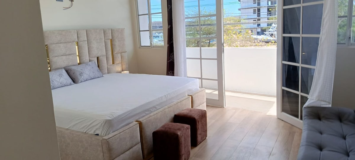 Cómodo apartamento renovado, con una habitación independiente, baño privado y aire acondicionado. Cuenta con una cama y colchon a estrenar con cortinas black-out para un descanso óptimo, además de un sofá cama ideal para un huésped adicional. La cocina esta equipada con utensillos basicos para uso diario. Ubicada a pasos del centro y a solo 4 minutos a pie del muelle de pasajeros, muy cerca del Malecón. Perfecta para descansar y disfrutar de la zona.