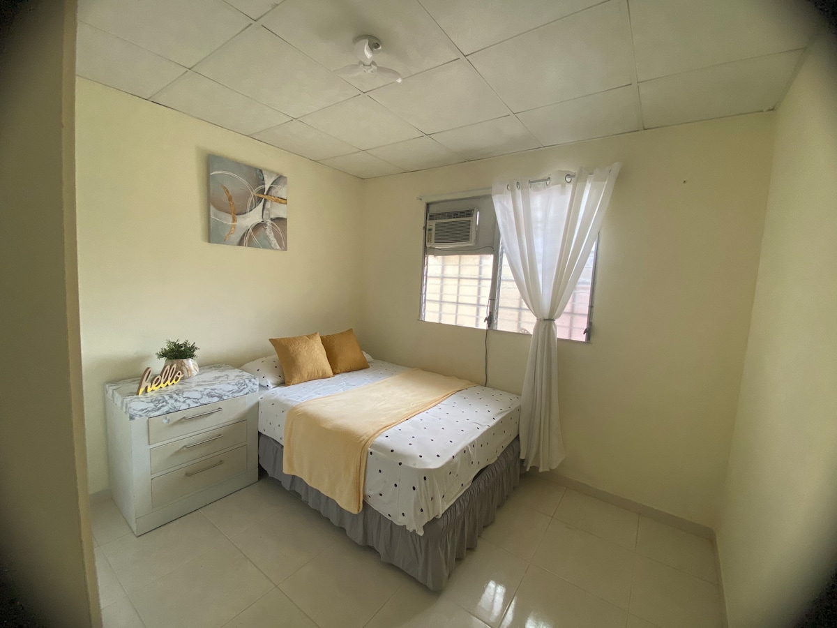 Bring the whole family to this great place. House in Quintas Del Pacifico, Costa Verde, Chorrera, nearby Hospital, mall, supermarket, schools. 3 Bedrooms with aa. 1 bathroom, kitchen, diner and living room. 20 minutes from Westland mall, 10 minutes from Gymnasium, Hospital, and supermarket. 2 secure parking with close porch. Close backyard. Enjoy the entire house for yourself and your family. 1 Queen size bed, 1 Full size bed and 2 Twins size beds. All rooms with walking closet.