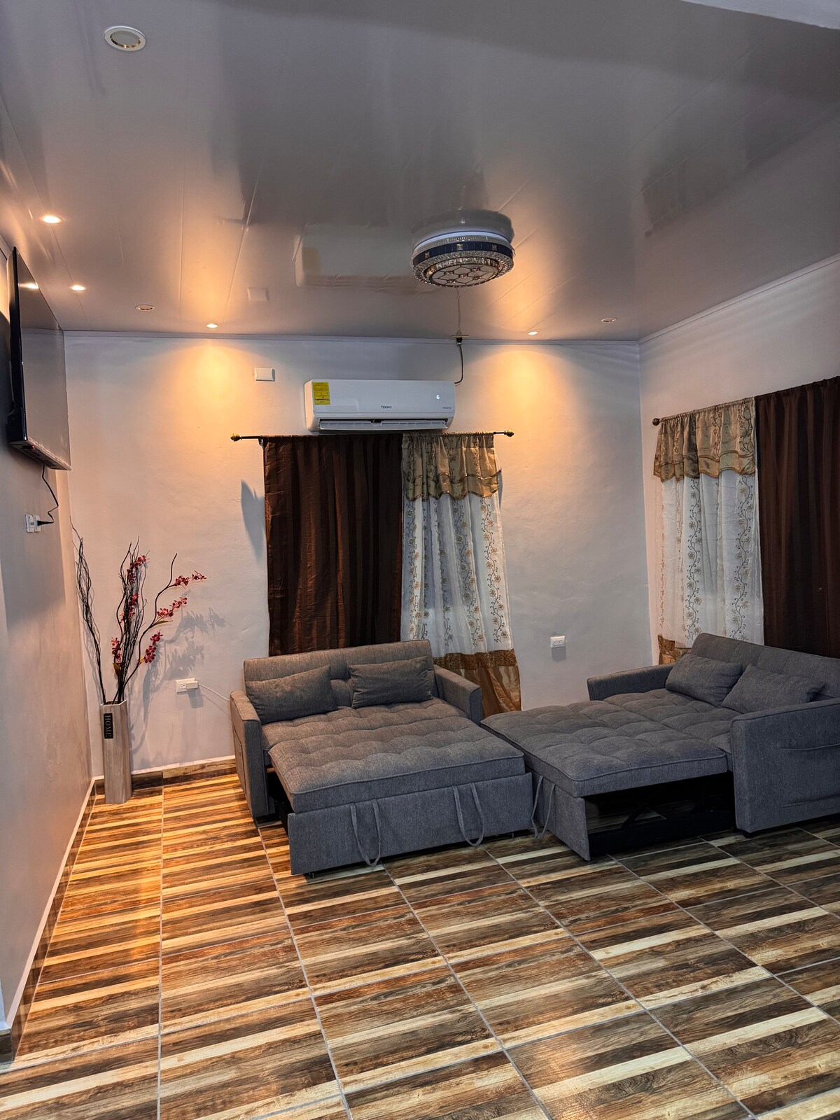 Relájate con toda la familia en este tranquilo lugar para quedarse. La Bella Fontana ofrece un espacio moderno, elegante y acogedor para descansar con comodidad. Disfruta habitación confortable, sala equipada, baño privado, aire acondicionado, limpieza impecable y ambiente tranquilo. Ideal para parejas y viajeros que buscan privacidad, seguridad, buena ubicación y una experiencia memorable durante su estadía cómoda estancia corta perfecta con acceso a la playa de Tulian campo