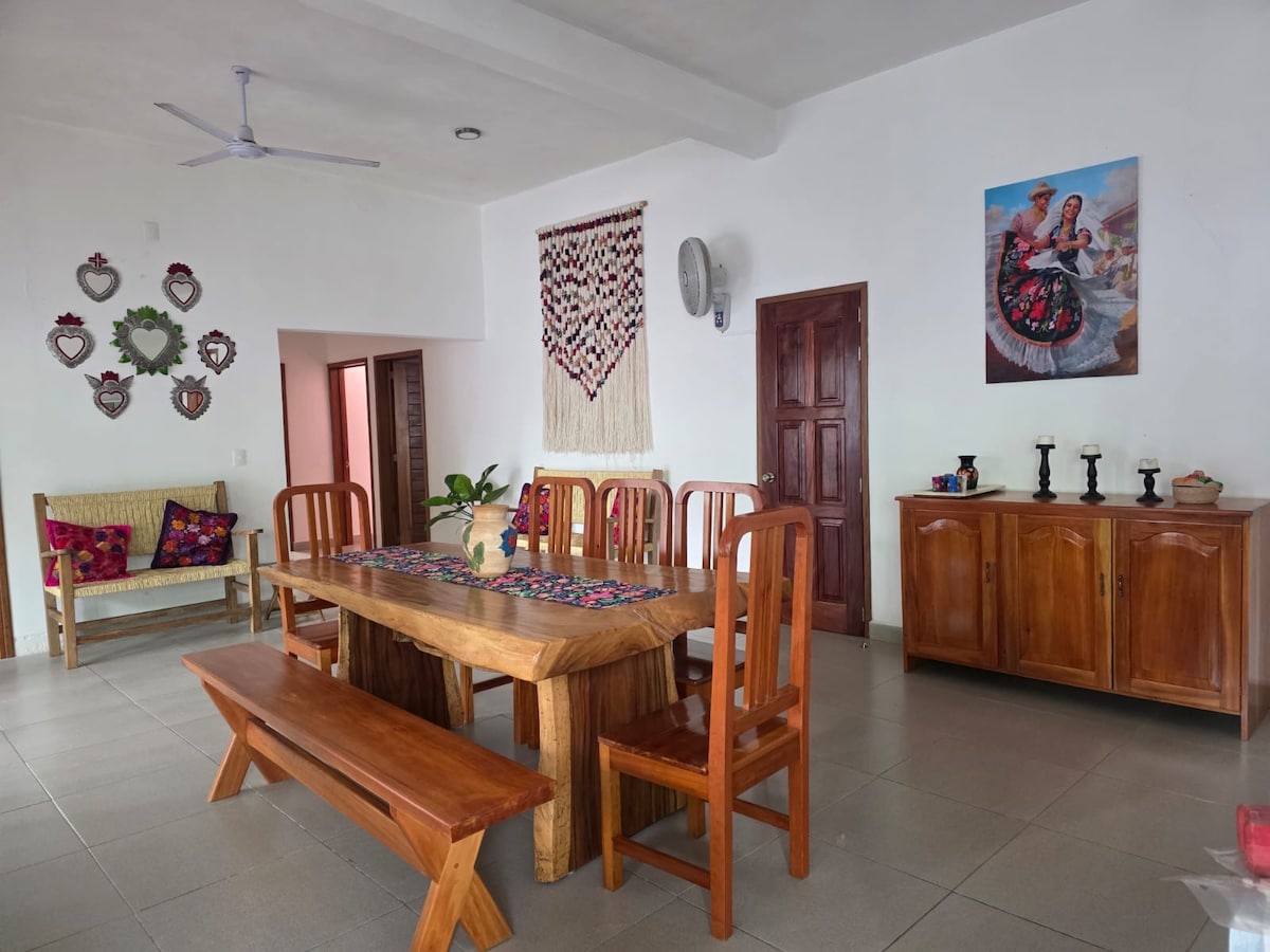 (İngiliscə danışılır!) 🫡 Süita Artesanía Mexicana-nın orijinal ləzzətinə malikdir, çünki Adobe memarlığı çox sərin və termaldır! Puerto Eskondidoda ən təhlükəsiz və sakit ərazilərdən birində yerləşir. Tək səyahətçilər və ya cütlüklər üçün idealdır! -İntrade , Müstəqil Terras və Hamam Otağı. - Pulsuz WIFI və TV -A/C və Tavan ventilyatoru -Friqobar, Mikrodalğalı soba Playa Bacocho-ya təxminən 7 dəqiqəlik, Playa Manzanillo, Carrizalillo və Angelito-dan isə 15 dəqiqəlik məsafədədir.