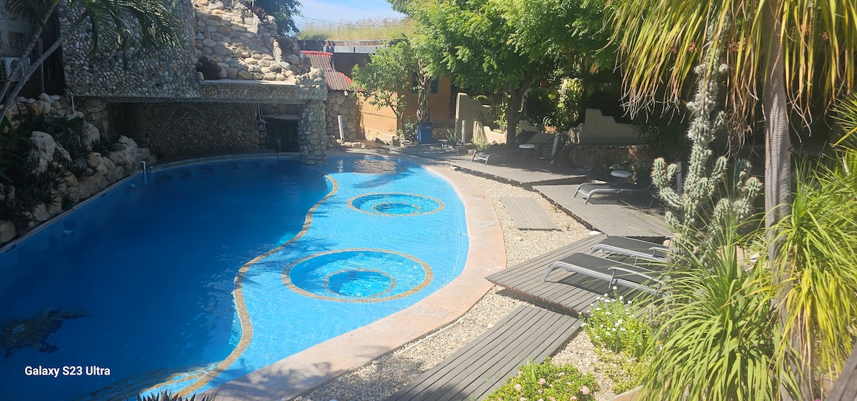 Bu unikal və təzə mənzil özünüzü evinizdəki kimi hiss etməyinizə səbəb olacaq! Mətbəxinizdə və yaşayış yerinizdə azadlığınızdan və məxfiliyinizdən zövq alın - və/və ya qamakdakı bəzi xüsusi xatirələri paylaşın və/və ya gün batımı terrasındakı bəzi xüsusi xatirələri paylaşın. Dəniz səviyyəsindən 50 m yüksəklikdə, lakin yalnız qumda ayaqlarınızı gizlətməkdən və ya təzə şirələr, tipik yeməklər və ya ürəyiniz istəyən hər hansı başqa bir şey yolda olan bir çox restoranda.