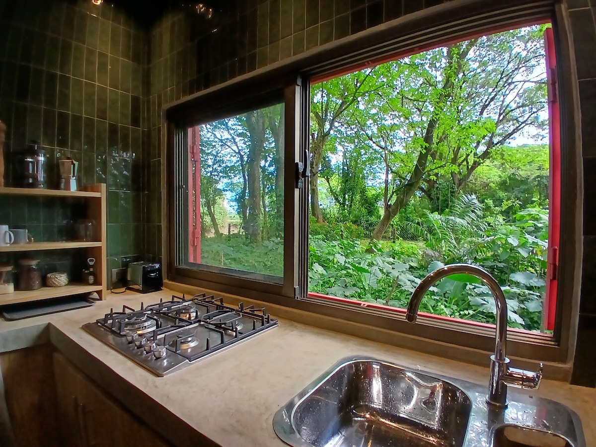 Qüllə ağacları arasında yerləşən və Río de Yásica-ya xüsusi girişinizdən cəmi 20 metr məsafədə yerləşən 46 m² evimiz müasir rahatlıq və təbii gözəlliyin harmonik qarışığını təklif edir. Düşünülmüş şəkildə dizayn edilmiş kubik tikili yataq otağı, qonaq otağı, mətbəx və hamam otağını asanlıqla birləşdirən, geniş və cəlbedici atmosfer yaradan açıq konseptli tərtibatla məkanı və rahatlığı maksimuma çatdırır. Böyük pəncərələr sizi təbii dünya ilə əlaqələndirən meşə və çayın heyrətamiz mənzərələrini təklif edir.