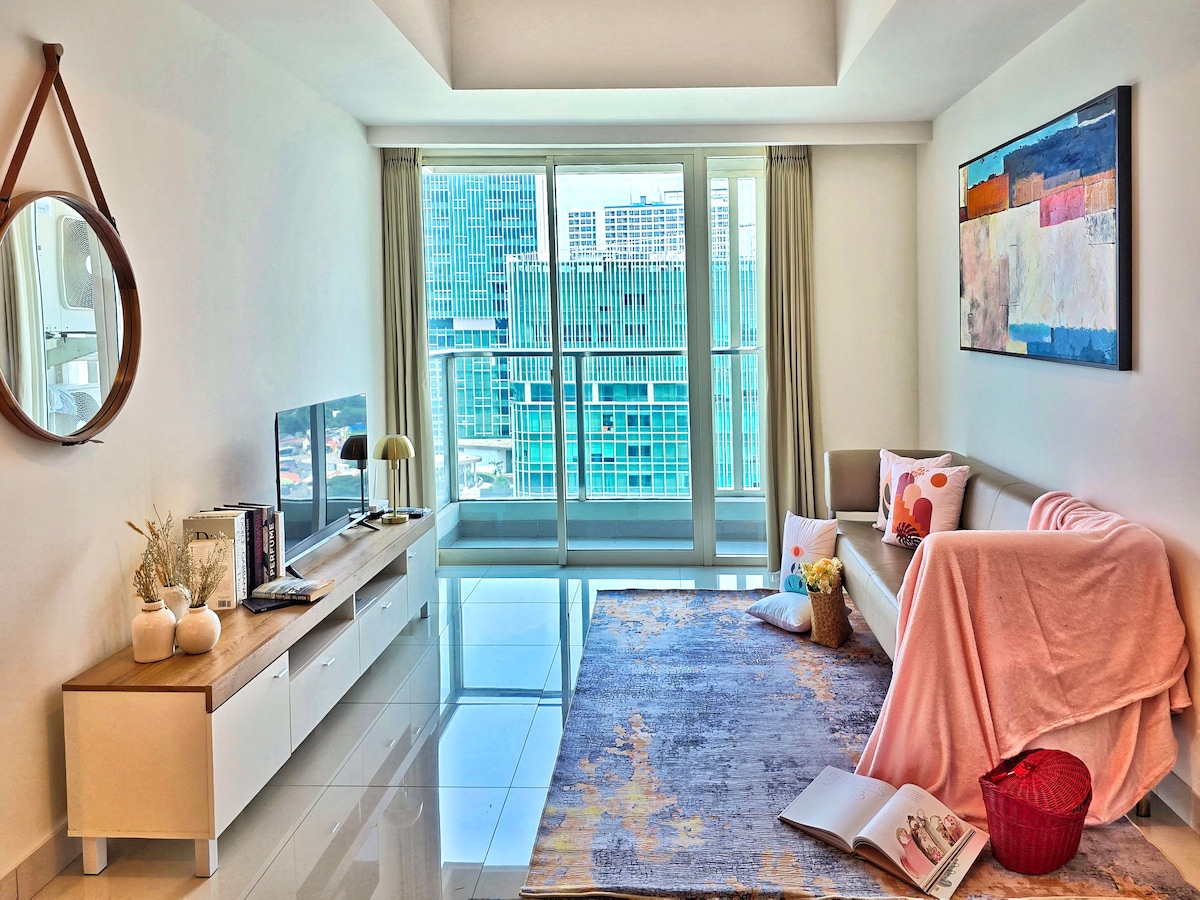 Brand New Renovated Apartment unit. Stay with the whole family to our homey spacious place, with 2 bedrooms and 1 sofa bed in the living room, fits 6 guests in total. Right in the biggest Mall of Indonesia (MOI) complex, tons of restaurants, shops and fun activities to spend for you and the whole family.