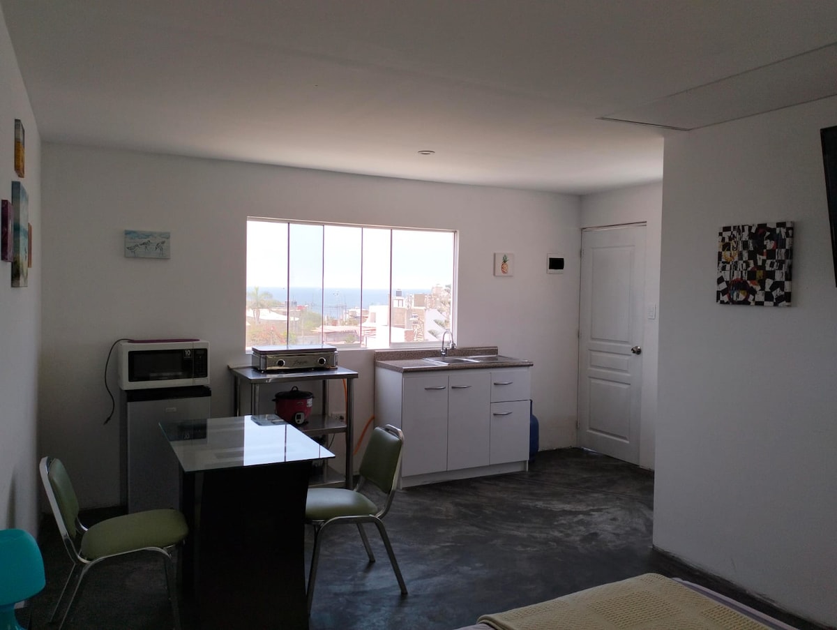 Bütün Mini Mənzil, DƏNİZ MƏNZƏRƏLİ, mebellə təchiz edilmiş, internet, kabel televiziyası, Pulpos çimərliyinin qarşısındakı evinizin rahatlığı və məxfiliyi olan Netflix və El Silencio-dan 3 blok. Çimərlikdə sakit bir gündən zövq almaq, balıq tutmaq və ya bodibordinqlə məşğul olmaq və ya sörfinqlə məşğul olmaq istəyən, kiçik cənubda istirahət və manqal gecəsindən sonra dənizin səsi ilə yatan və ya uzaqdan iş görən ailə və ya dostları ilə birlikdə tək cütlüklər üçün nəzərdə tutulmuş 24/7 nəzarətli qapalı kondominium daxilində tikilmişdir.