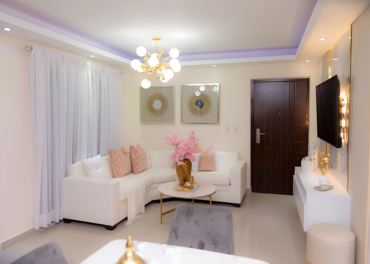 Hər otaqda paslanmayan polad cihazlar, qranit dəzgahlar, A/C və tavan ventilyatorları ilə tam təchiz edilmiş yeni 3 yataq otağı, 2,5 hamam otağı mənzil. Böyüklər üçün ayrıca hovuz və duş və hamam otağı olan uşaqlar üçün hovuzun da daxil olduğu bu rahat yerdə ailənizlə birlikdə dincəlmək mükəmməldir. Burada həmçinin iki pulsuz parkinq yeri, lift, 2 oyun meydançası, 24/7 gateman və pulsuz Wi-Fi var. Santyaqo hava limanından və El Area Monumentaldan 15 dəq. Mundo Acuatico Su Parkından küçəni keçir.