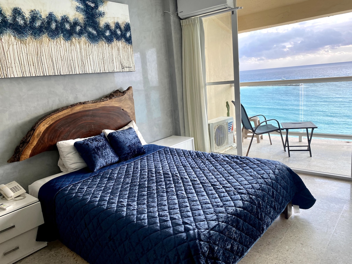Recently remodeled, direct Beach View Studio apartment, located in the most alive area of Cancun's Hotel zone but still great for relaxing, km 9.5, right next to the hard rock cafe, 24/7 convenience stores near, 24/7 bus services right in front & walking distance from the party zone where all the best clubs/discos are located and of course the amazing turquoise Caribbean an elevator ride away.