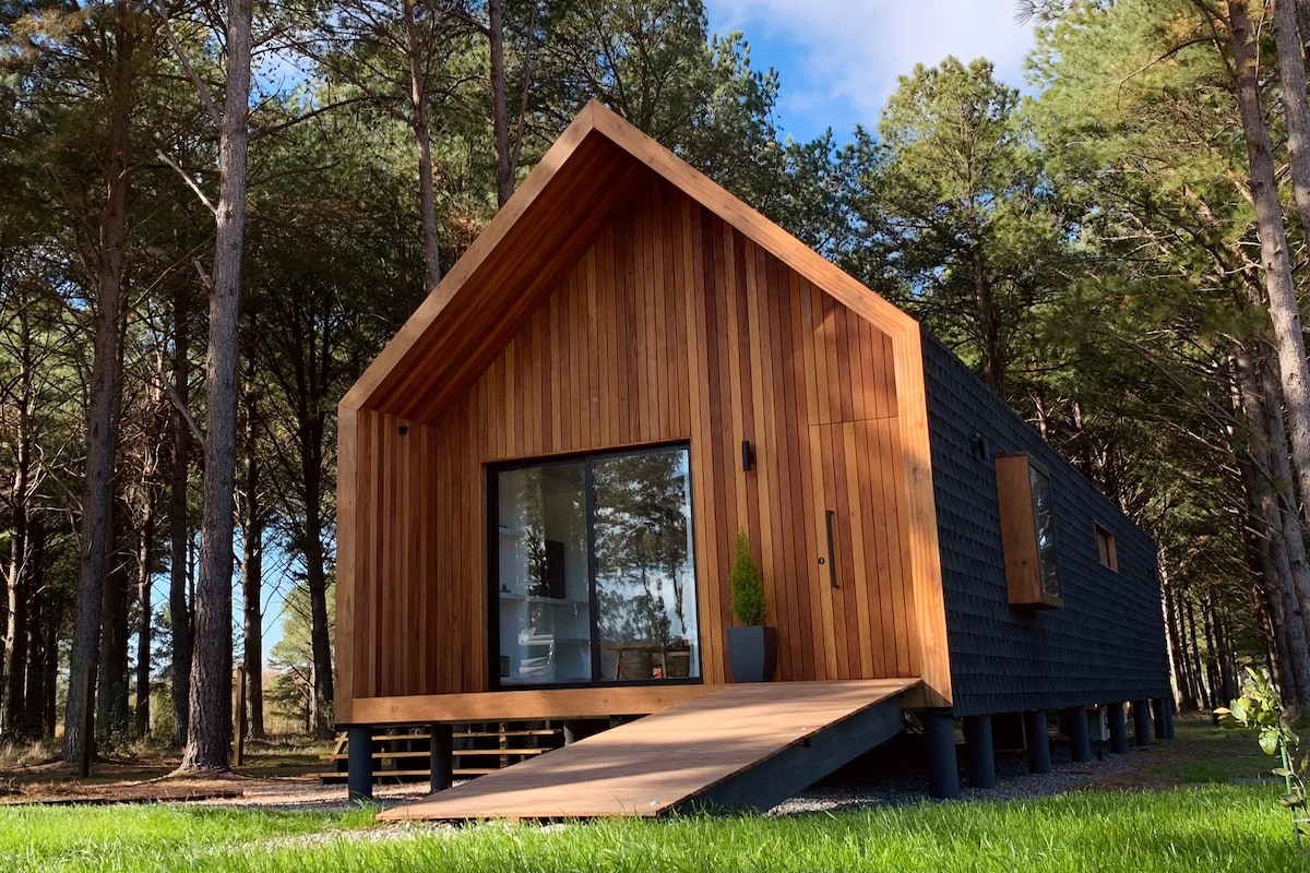 Cabaña diseño escandinavo ubicada en la tranquilidad del bosque a pocos metros del mar. Diseño funcional inspirado en la simplicidad nórdica. Detalles pensados con la calidez de la madera y todas la comodidades necesarias para disfrutar en pareja.