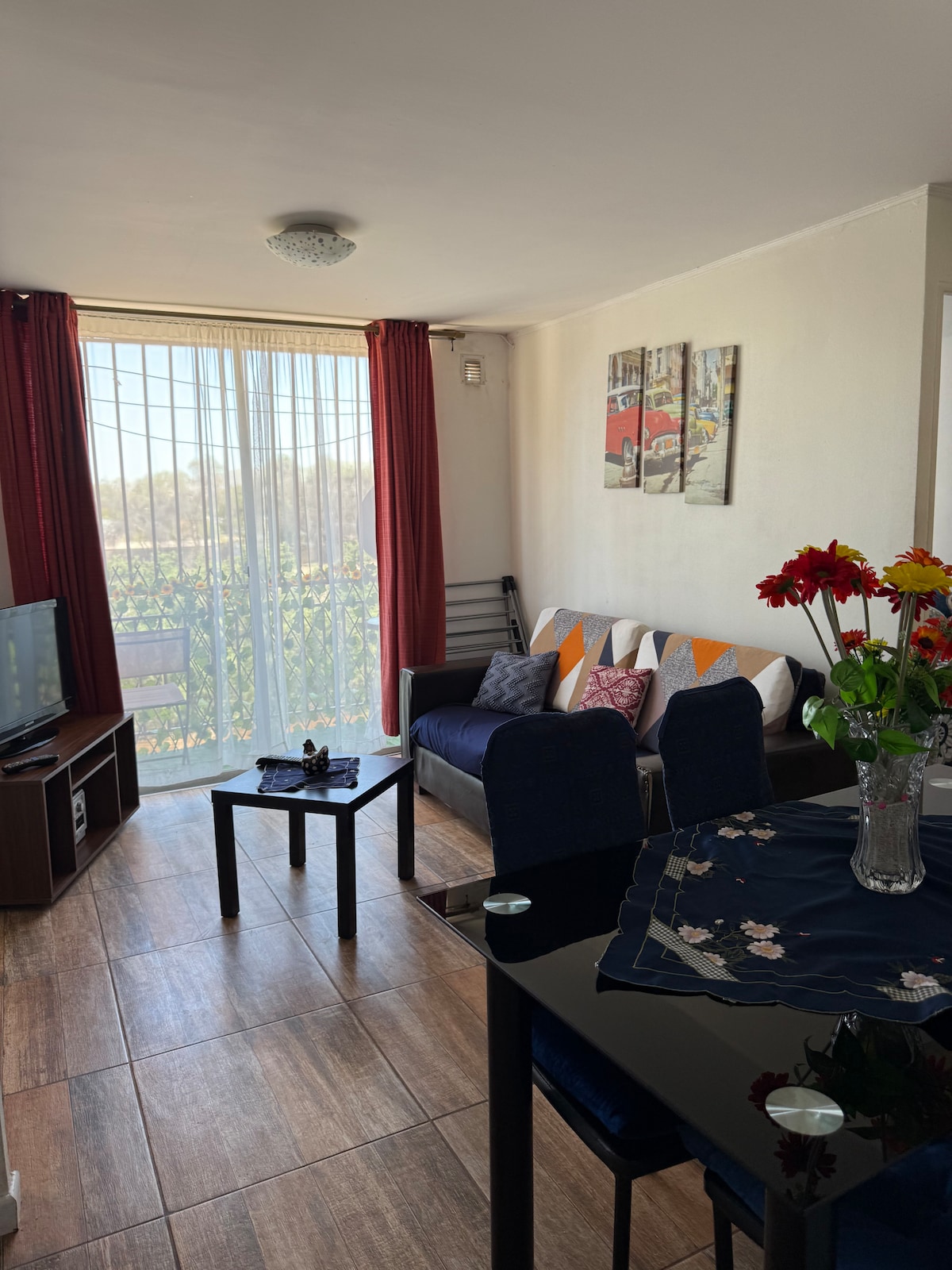 Relájate en este acogedor departamento de 1dormitorio y 1 baño, con estacionamiento privado, perfecto para parejas, viajeros de negocios o quienes buscan descansar en Copiapó. Ubicado en un condominio seguro y tranquilo, disfrutarás de una excelente conexión con la ciudad: • A pasos del Casino Antay 🃏 • Cerca de supermercados 🛒 • Próximo al Hospital Regional 🏥 • A solo minutos del centro 🚶♂️ • Con locomoción en la puerta 🚍 El espacio está diseñado para ofrecerte comodidad.