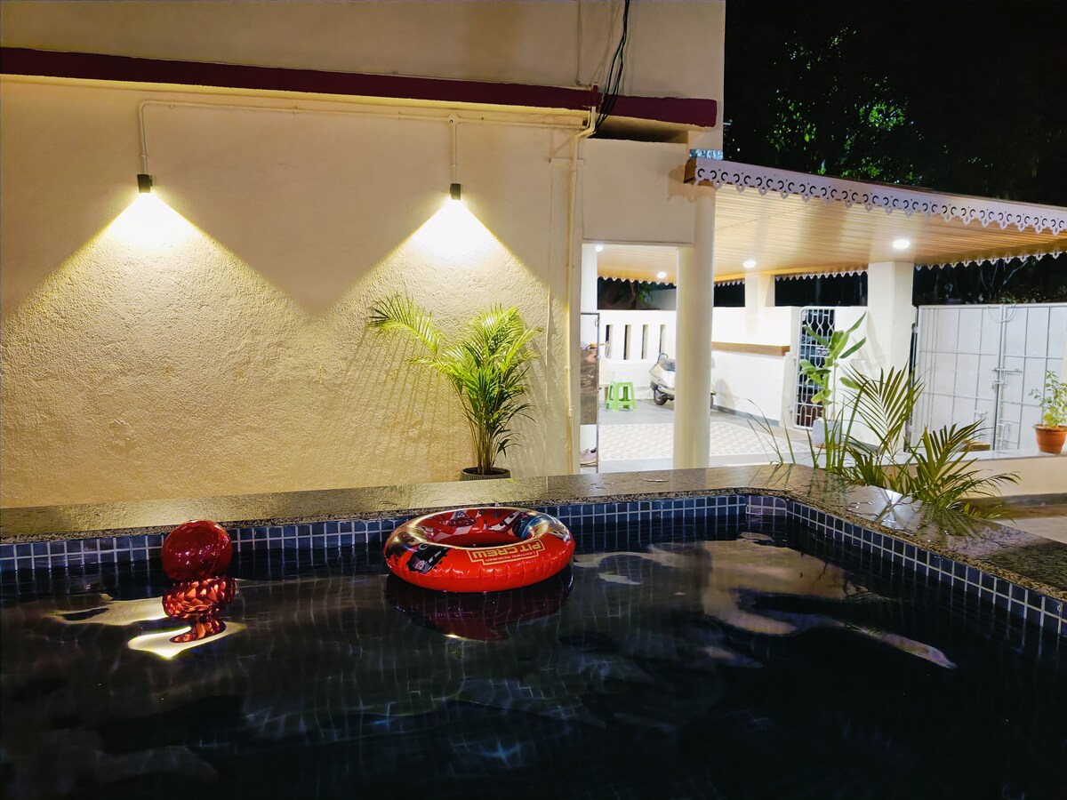 This is a place we dreamed for ourselves to relax, unwind, dream and cherish our coastal Konkan vacation. Nestled around coconut trees, chirpy birds, open to sky patio & deck area with peaceful surroundings in a prime residential area few mins away from the city center & around 8-10 mins from beach. Relax and rejuvenate in an open to sky, plunge swimming pool. We have 1 king size bed with Wakefit mattress and 1 sofa cum king size bed. Place is on the ground floor & easily accessible to all.