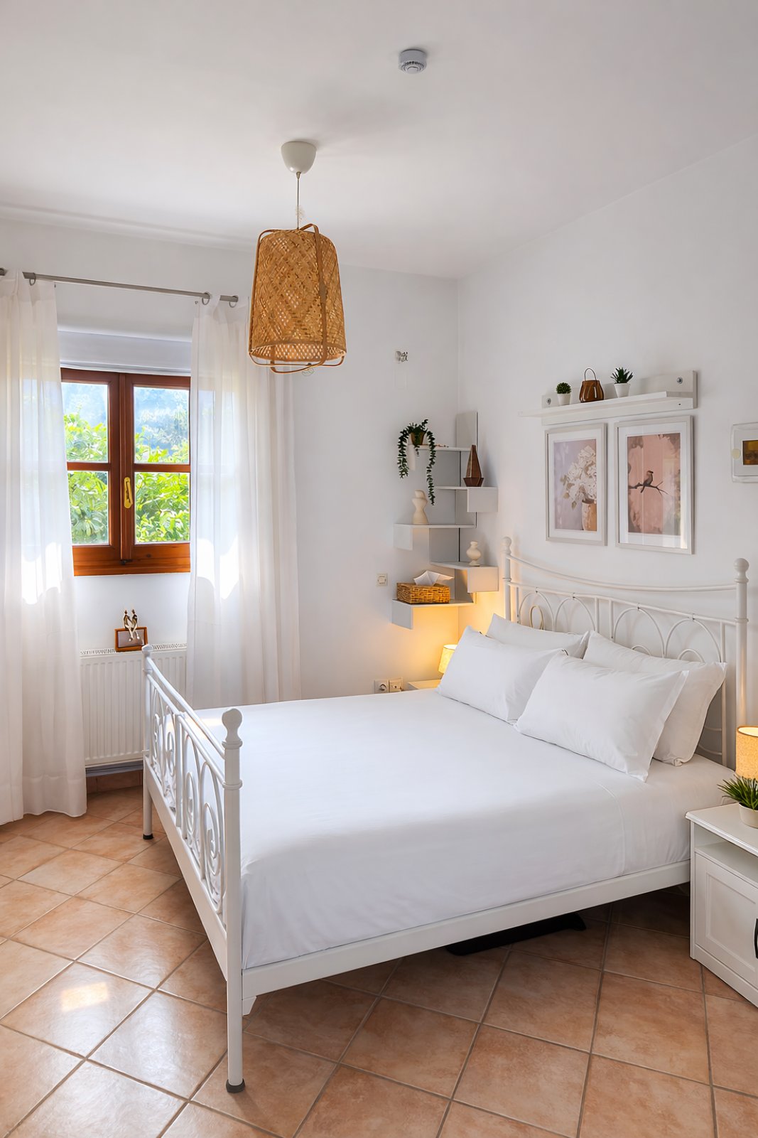 The Main House is the largest of the four independent houses at Chariclea Villas Retreat, offering privacy and tranquility in a stunning natural setting. Designed for up to 6 adults and 2 children, it features a cozy living room and panoramic sea views. The spacious dining area and fully-equipped kitchen create the perfect space for memorable meals and gatherings. The property also includes the Eco, the Cave of Light and the Guest House, each with its own private entrance and parking area.