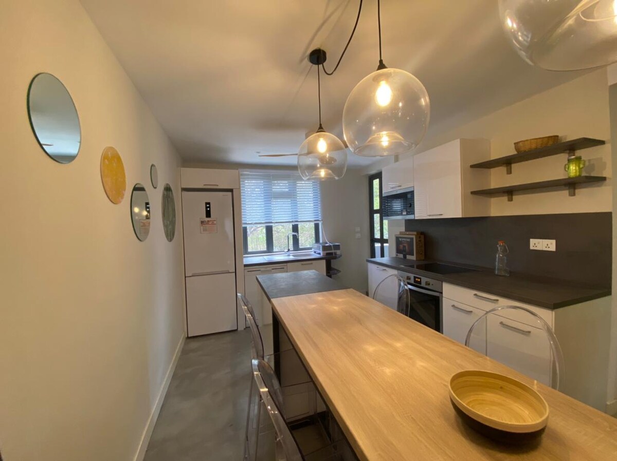 Yeni, kiçik qonaq evində 1-ci mərtəbədə mənziliniz. Məxfilikdən və 2 yataq otağı, 2 hamam otağı, salon, 2 mətbəx və ayrıca verandadan zövq alacaqsınız. Əmlakda istiliklə qızdırılan damüstü hovuz, idman zalı və piknik masası var. Ayrıca çimərliklərə və butik otellərə yaxın ərazidə yerləşir. Böyük şəxsi barbekü terrasınız, açıq havada oturma yeriniz və bar və digər sahələrə girişiniz var. Yerli restoran və otellər qısa gəzintidir. Bütün otaqlarda kondisioner. Point aux Canionniers Mont Choisy Beach və Grand Baie arasındadır.