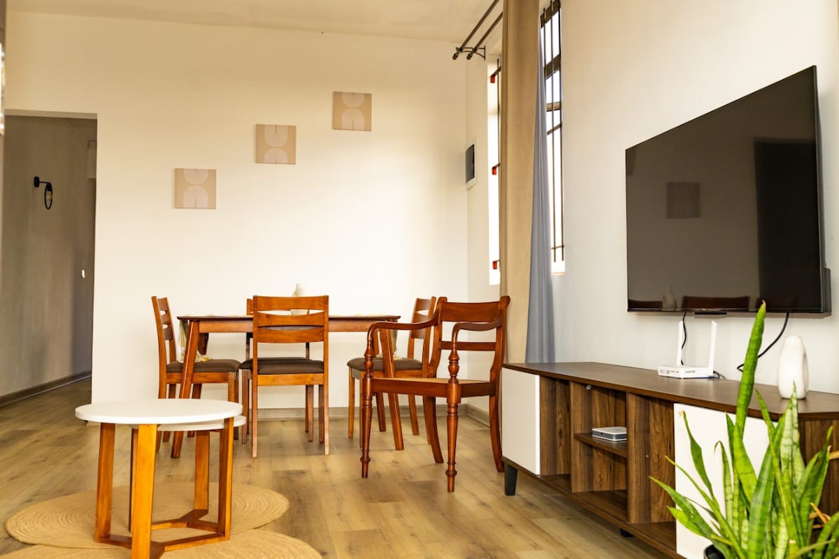 Ebene şəhərinin mərkəzində qonaqlayın. Ebene City-də yerləşən Studio 307 balkonu, pulsuz Wi-Fi və xüsusi xüsusi parkinqi olan dəbdəbəli özünə məxsus qonaqlama təklif edir. Kondisionerli mənzilə tam təchiz edilmiş mətbəx, camaşırxana ləvazimatları, divanı olan oturma sahəsi, düz ekranlı televizor, iş masası və ayrıca vanna otağı daxildir. Birinci mərtəbədə ticarət sahəsi, aptek, tibbi konsultasiya və qida meydançası tapa bilərsiniz. Tac: 15628