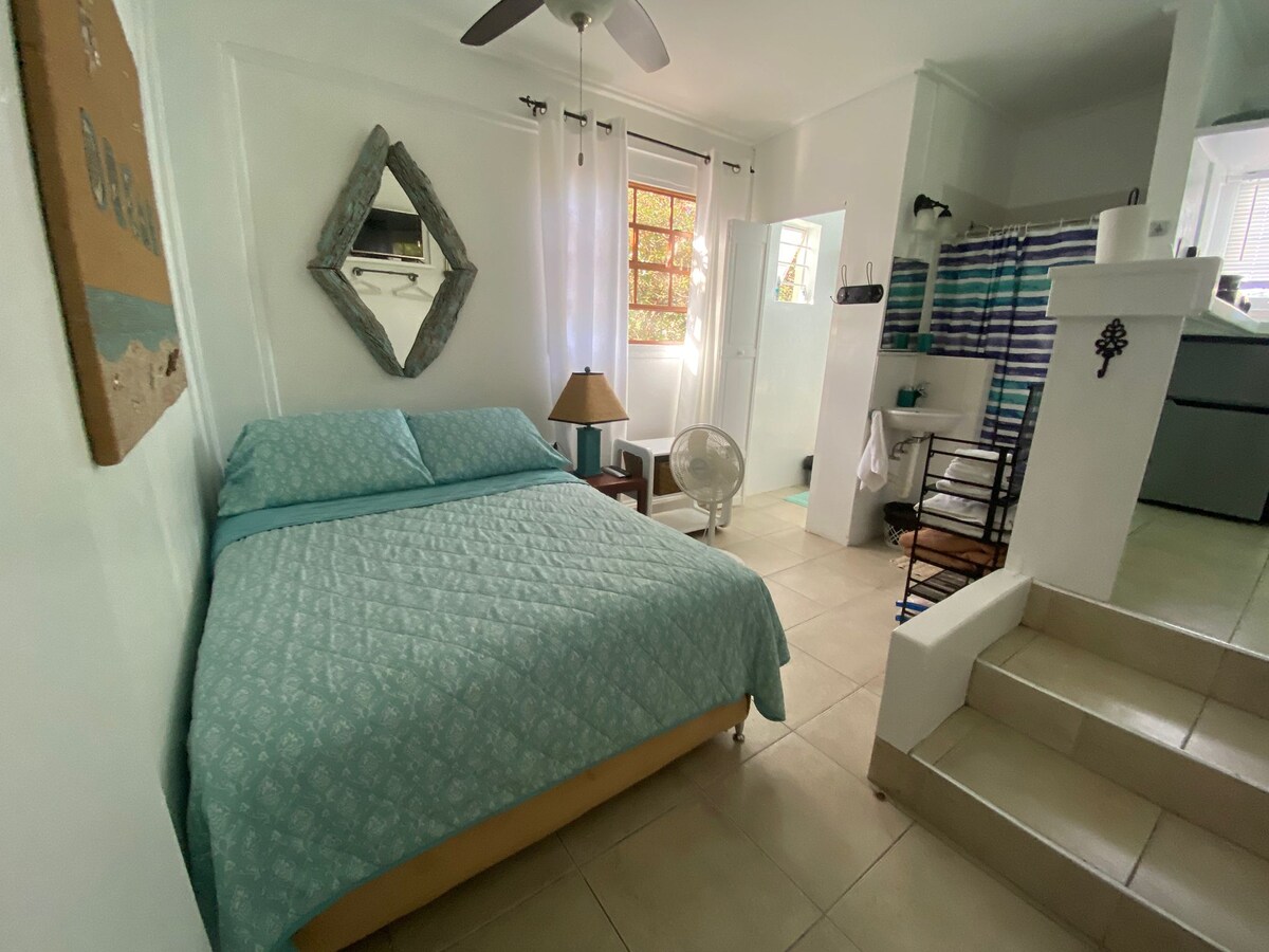Gözəl mavi Karib dənizi, Boulinq gecə həyatı, Xovlu restoranlar və bir çox digər imkanlardan cəmi bir neçə dəqiqəlik məsafədə yerləşən sakit məhəllədə fərdi yaşayış evinin arxasında yerləşən rahat studiya mənzili. Əmlakda Tam təchiz olunmuş mətbəx, paltaryuyan maşın, eləcə də barbekü var. Məkan Kondisionerlidir və kral ölçülü çarpayı, eləcə də tək çarpayıya qatlanan futon var. Mənzildə seyf yerləşir.