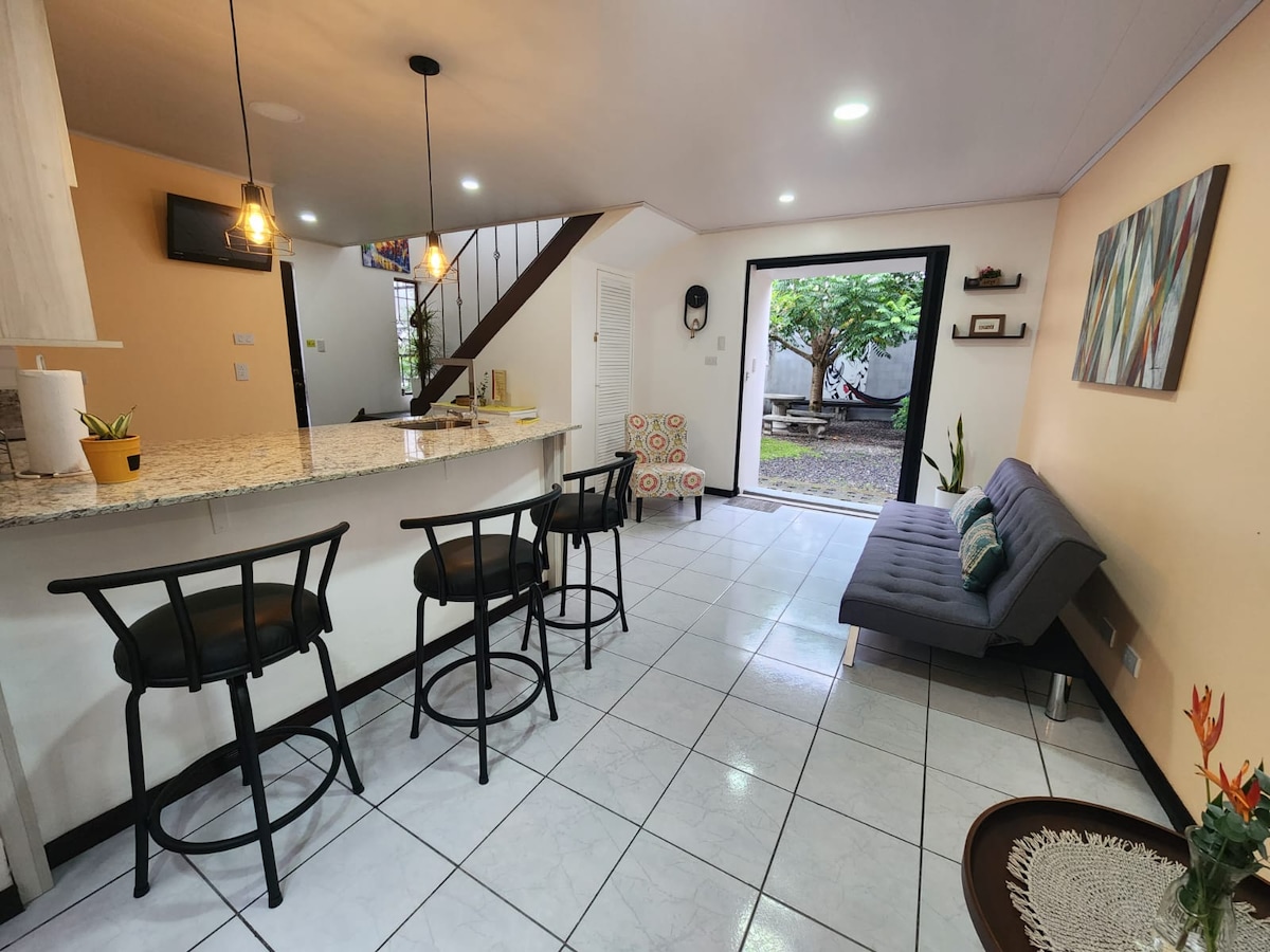 Arenal vulkanından 30 dəqiqəlik məsafədə, təbiətlə əhatə olunmuş rahat kabinə. Tropik bağlarla əhatə olunmuş, rahatlıq və sakitlik tapmaq və ya uzaqdan işləmək üçün ideal olan sakit və rahat məkan. Təklif etdiklərimiz: • Sürətli Wi-Fi + iş sahəsi • Tam təchiz olunmuş mətbəx • Bağlar və ətrafdakı canlı təbiət • Rahat çarpayı və səmimi atmosfer Cütlüklər, tək səyahətçilər və təbiətsevərlər üçün mükəmməldir. Təmiz havadan, meşənin sakitliyindən və turistik məkanlar və isti bulaqların yaxınlığındakı strateji mövqedən zövq alın.