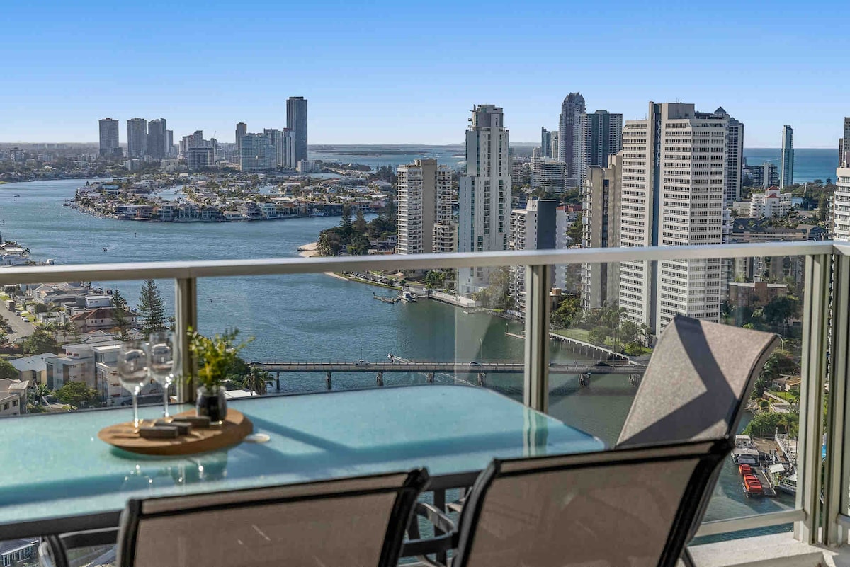 🌊 Okean Sahilində Dəbdəbəli Tətil — Meriton Suites Surfers Paradise Dünyaca məşhur Qold-Kostda 5 ulduzlu çimərlik mənzərəsi olan nüfuzlu Meriton Suites Surfers Paradise-dəki dəbdəbəli yaşayış yerinizə xoş gəlmisiniz. 39-cu mərtəbədə zərifcə yerləşən möhtəşəm mənzildən Sakit okeanın və şəhərin canlı siluetinin nəfəskəsici panoramik mənzərələrini seyr edə bilərsiniz İşləmək, striminq və ya sadəcə ünsiyyətdə qalmaq üçün ideal olan ildırım sürətli 500 Mbps Wi-Fi ilə zövqlə dincəlin və dünyayla əlaqənizi itirməyin.