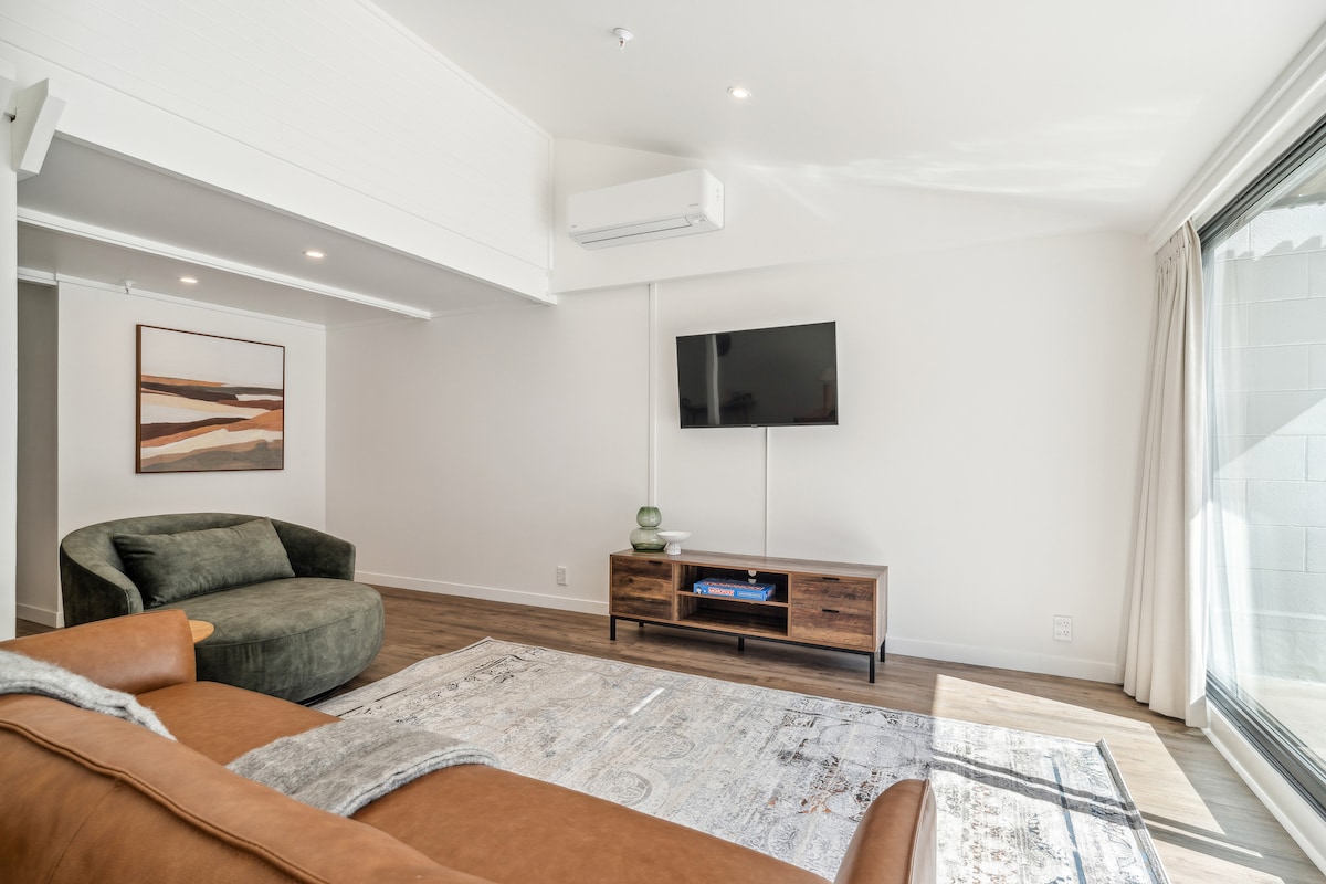 Öz balkonu və möhtəşəm mənzərəsi olan yeni 1 yataq otaqlı, yuxarı mərtəbəli mənzilimizdə Aleksdə dincəlin və rahatlanın. Salonda rahat divan çarpayısı olan iki böyük (və 12 yaşa qədər iki uşaq üçün pulsuz) uyğundur. (Divan çarpayı tələb edirsinizsə, bizə bildirin) Füsunkar restoran, bar və fəaliyyətləri olan Kuinstaun şəhər mərkəzindən 10-15 dəqiqəlik məsafədə! Tam mətbəx, qonaq məkanı, Wi-Fi, Netflix ilə rahat tətil üçün lazım olan hər şey var. İcma idman zalı və təhlükəsiz qaraj üçün parkinq yeri!