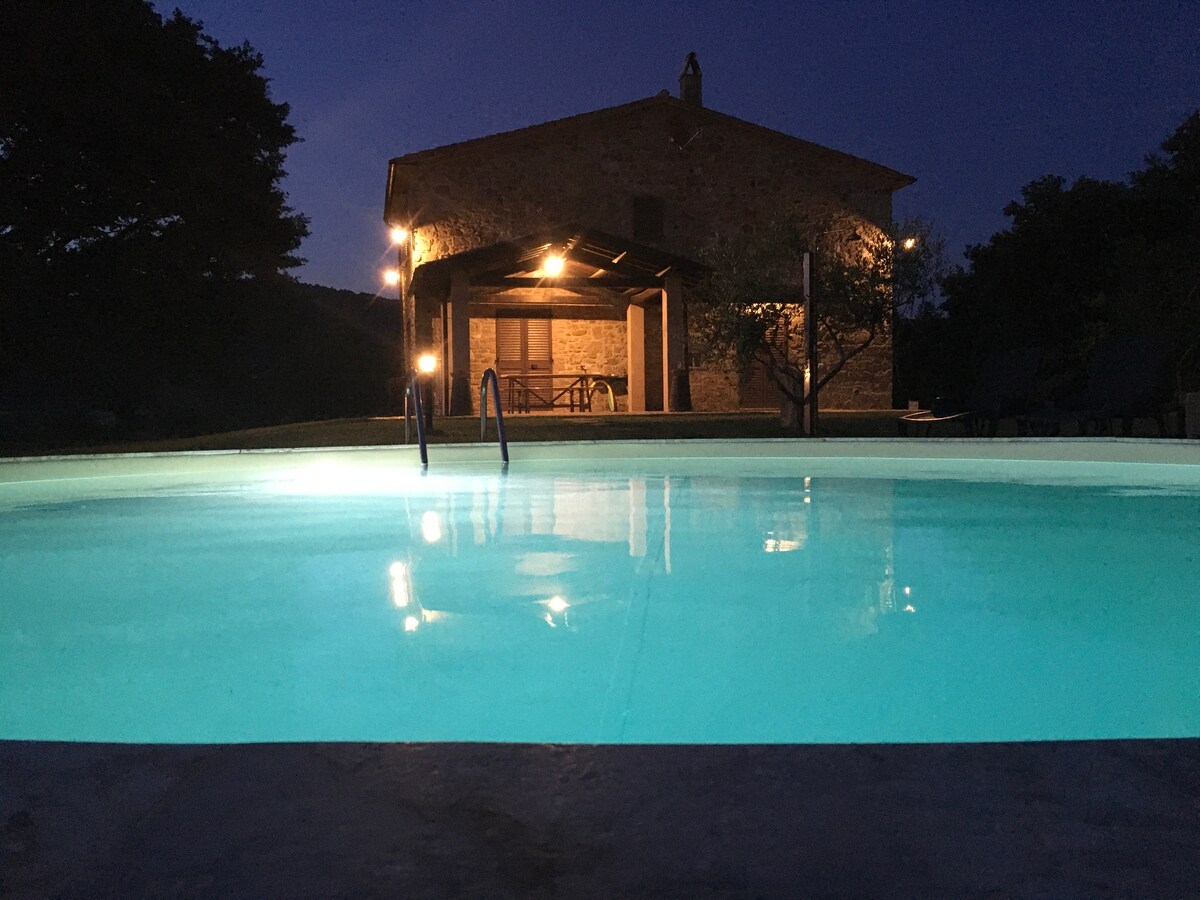 Bu gözəl qoyun dərisindən daş kottec müasir rahatlıqlar və spa vasitələri ilə pulsuz təchiz olunub. Meşə və çəmənliyin böyük torpaqları silsilə dağ silsiləsini əhatə edir və şimalda Val d 'Orcia vadisinin panoramalı mənzərəsini, cənuba doğru geniş Maremema və qərbdə Amiata qədim vulkanını təmin edir. Bu, zəngin şərab, yemək, mədəniyyət, tarix və cənubi Toskananın landşaftını araşdırmaq üçün xüsusi istirahət etmək istəyənlər üçün mükəmməl tətildir.