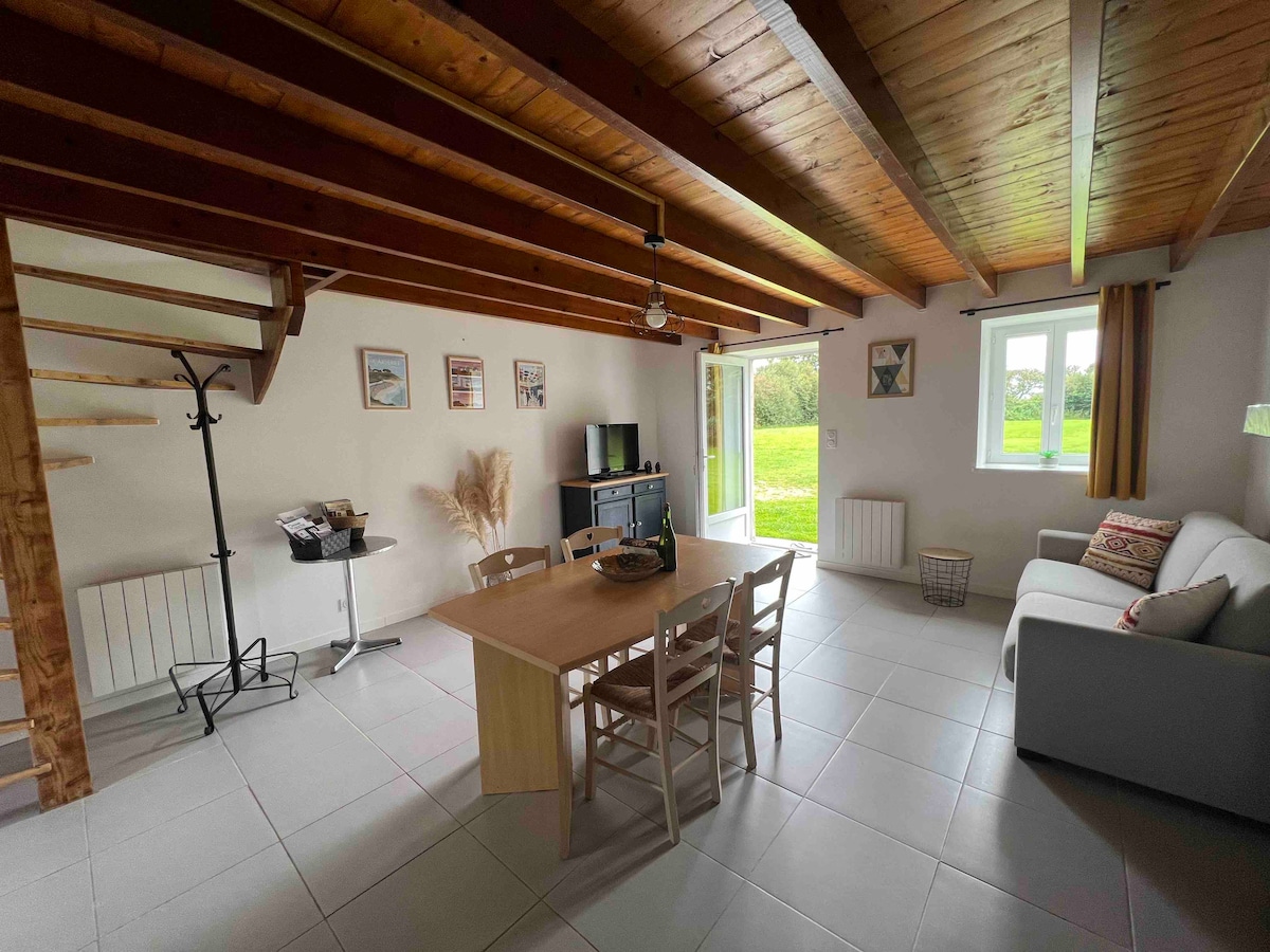 Köhnə saman anbarı 2023-cü ildə sahibləri tərəfindən zövqlə bərpa edilib. Xoş qonaqlama üçün bütün lazımi komfortları tapa bilərsiniz. Kottec çöldən girişi olan yuxarıdadır. 4000 m2-lik bağ ailəmizlə paylaşılır. Bağçaya və onun imkanlarına, barbekü, yelləncək, petank meydançası və toyuq, qaz, ördək və keçiləri olan mini heyvanat parkına giriş imkanınız var. Kotentin Sciototot və Siuvilin gözəl çimərliklərindən 15 dəqiqəlik məsafədəyik.