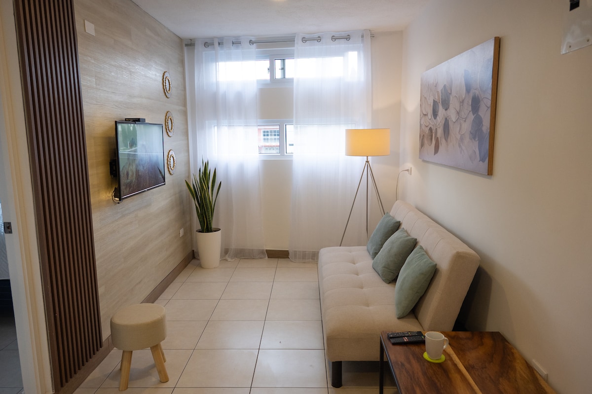 Apartamento acogedor y luminoso en zona residencial 🌿✨ Disfruta de una estancia cómoda en este espacio lleno de luz natural, ubicado en una zona tranquila y segura. A solo 15–20 minutos en carro del centro, tendrás fácil acceso a todo mientras descansas lejos del ruido. Incluye parqueo privado para 1 vehículo y el condominio cuenta con áreas verdes y juegos para niños. Ideal para viajes de descanso o trabajo. ¡Todos son bienvenidos! 😊