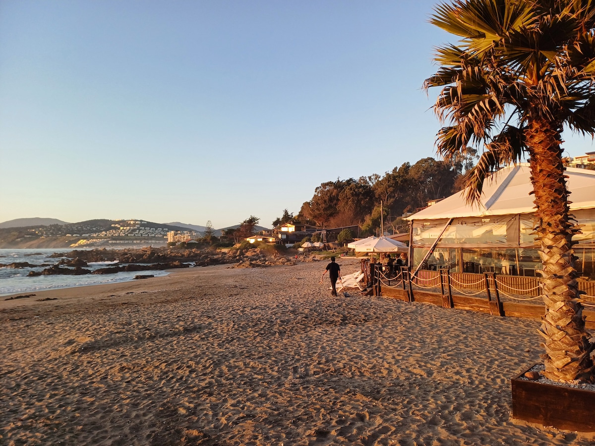 Maitencillo Spa mərkəzində yerləşən bu 2 nəfərlik qonaqlamadan sənətkarlıq yarmarkasına, restoranlara gedə bilərsiniz. Burada birbaşa çimərliyə giriş var. Yaxınlıqda bir neçə ticarət məkanı və Tottus supermarketi var. Çimərliyə daxil ola bilərsiniz, parkinqi yoxdur, lakin avtomobilinizi əsas küçədə park edə bilərsiniz. Televizor var, lakin kabel yoxdur, onu kompüterinizlə monitor kimi istifadə edə bilərsiniz. Wi-Fi da yoxdur. Duş dəsmalları təmin etmirik.