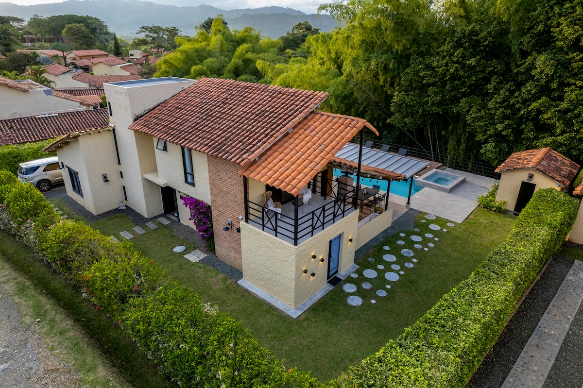 Spacious villa in the heart of Colombia’s Coffee Region minutes away from Parque Panaca and many tourist activities. Our home offers luxury amenities carefully curated to provide families an unforgettable experience including: • Private Pool • Jacuzzi • Catamaran Net • Home Theater w/ 85” TV • Smart TVs in all bedrooms • Free Netflix • Wifi • FULLY Equipped Kitchen • Mountain Bikes • Spa • BBQ Area Our villa is located within a private condominium offering guests security 24/7