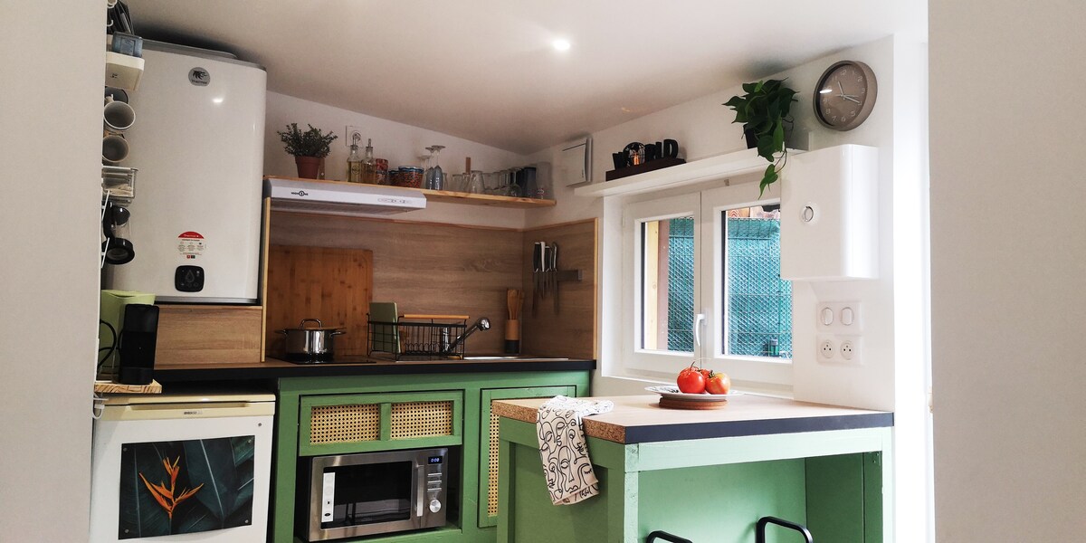 Meşənin kənarında balkonlu 30m2-lik müasir studiya və Brunoyda sakitcə ayrıca parkinq. Maksimum 3 nəfər (2 böyük və bir körpə👶) qonaqlayır. Avtobus Brunoy stansiyası ilə 🚎 8 dəq 🚄 25 min RER D PARIS Lion stansiyası 🚗 30 min Paris və 35 min Disneyland Paris Piyada 👨🎓10 dəq. CFNDI Brunoy 🏃♀️🚴♂️ Senartın 1 dəqiqəlik meşəsi Tam təchiz olunmuş mətbəx, keyfiyyətli yataq dəsti (160×200), uzaqdan işləyən yer (ekran, tənzimlənən masa), duş kabinəsi olan hamam otağı. Meşə mənzərəli balkon. Körpə üçün imkanlar.