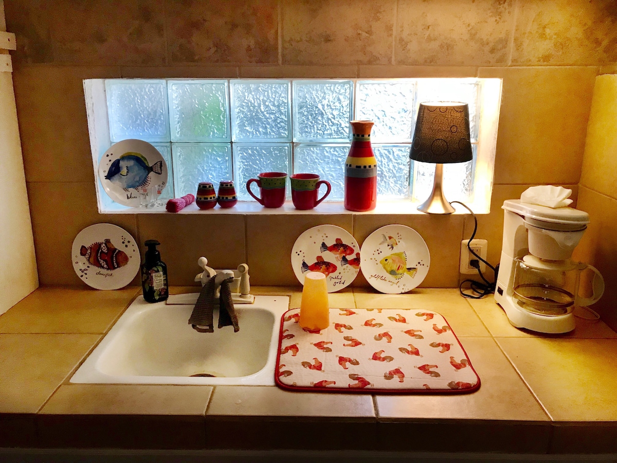 THE JUNGALOW! Xülya deyil, yalnız ƏYLƏNCƏ! Cəngəllik Ailə Düşərgəsi büdcəni pozmadan macəralı tətil keçirmək üçün ən yaxşı yerdir. Kiçik studiya banqalosumuzda rahat düşərgə kimi qonaqlama. Ana və baba üçün King ölçülü çarpayı, üstəlik uşaqlar üçün çarpayı çıxarın. Şəxsi mətbəxinizdə və ya BBQ-də öz yeməklərinizi bişirin. Bütün gecəni rahat yatın və balaca çərpələng quşlarının səsinə oyanın. Gününüzü kəşf etməklə keçirin. Sonra Akumal DÜŞƏRGƏSİNDƏ mehriban simalara və komfortlu məkanlara qayıdın! Ev sahibliyi edilən təcrübə!
